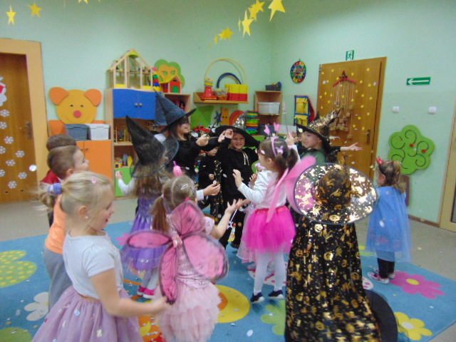 ?Hokus pokus czary mary niech się spełnią andrzejkowe czary?. Na Balu Wróżek i Czarodziejów w przedszkolu były czary, wróżby i tańce. Wróżki i Czarodzieje  świetnie się bawili podczas zabaw i wróżb, które życzymy by się spełniły w przyszłości.