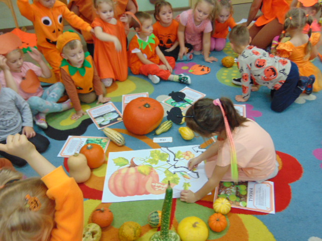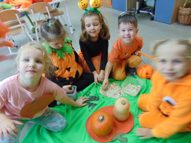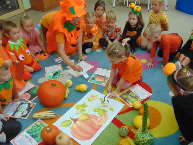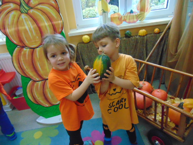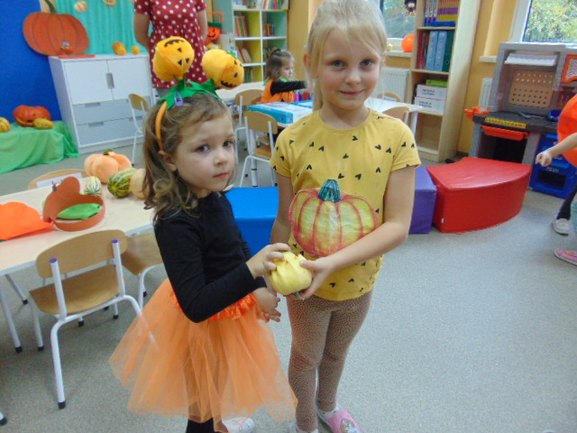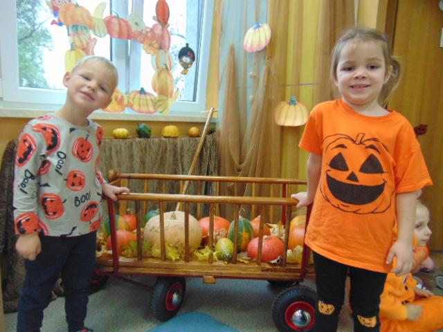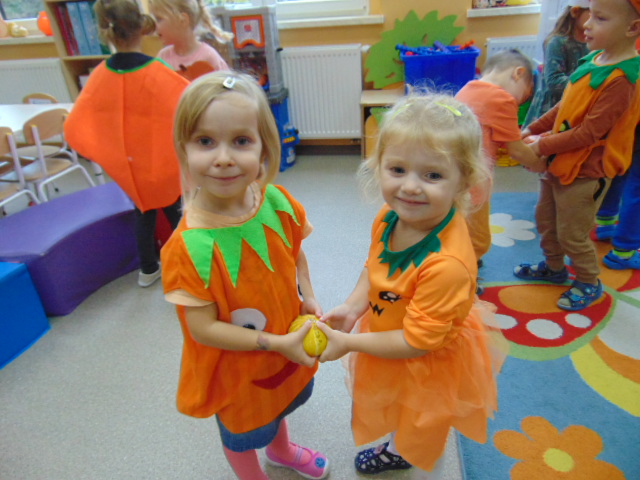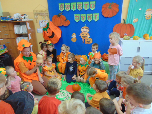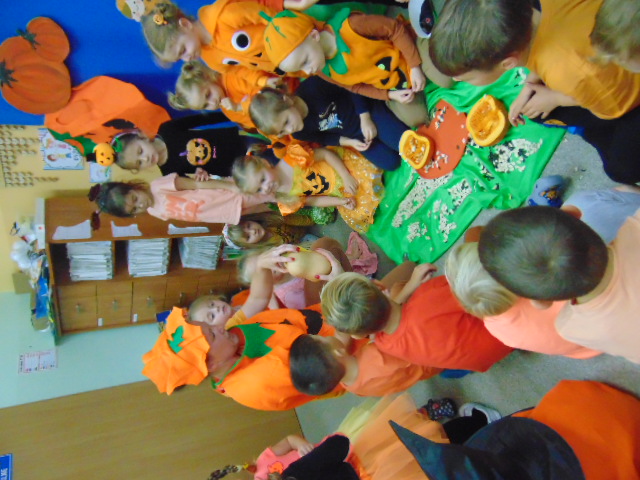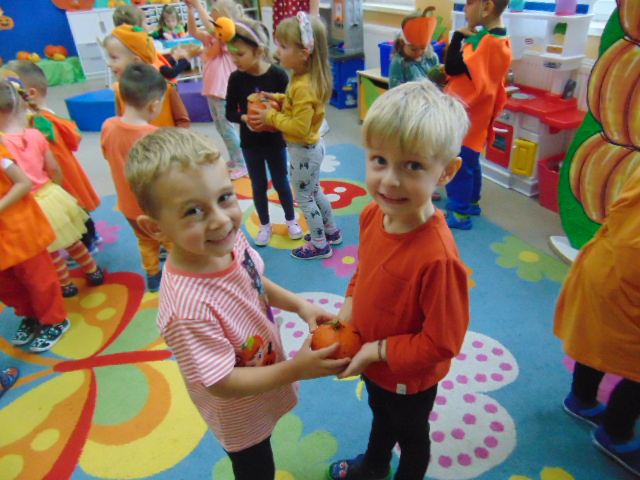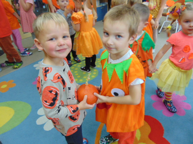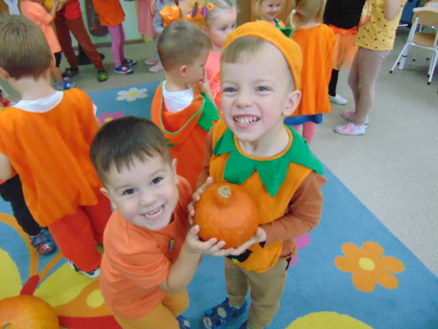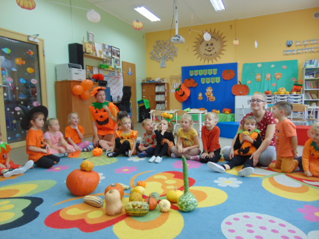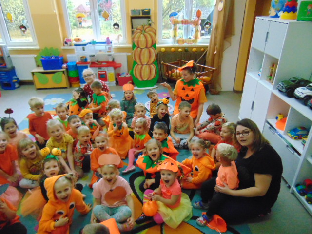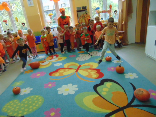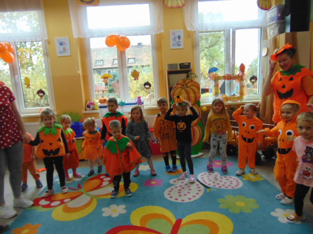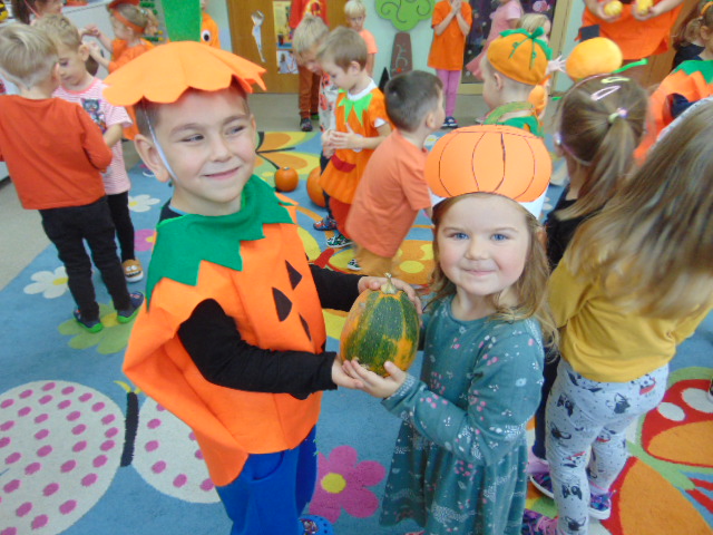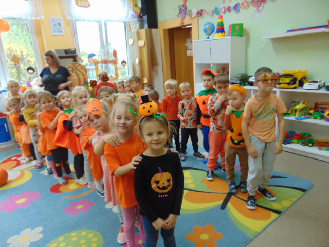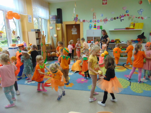 Przystrojona sala pełna kolorowych dekoracji odczuwała radosny oddech zabawy tego dnia. Nasze przedszkolaki z uśmiechami na twarzach uczestniczyły w wielu aktywnościach, zaczynając od dynamicznej zabawy i tańców. Jednak głównym wydarzeniem tego dnia było zorganizowanie dyniowych zawodów. Dzieci w pięknych strojach, prezentowały swoje umiejętności i kreatywne pomysły związane z dyniami.