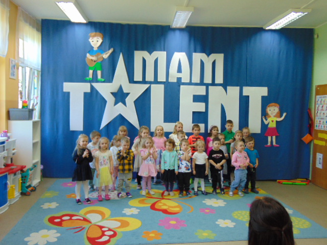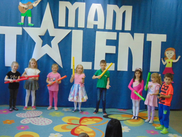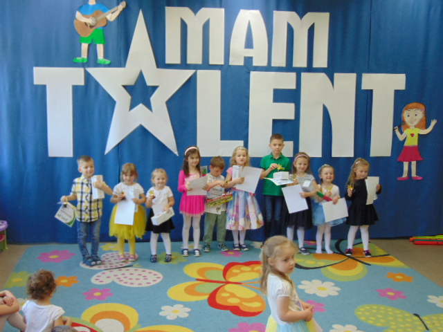 Dziś w naszym przedszkolu odbył się konkurs ,,MAM TALENT". Przedszkolaki zaprezentowały swoje talenty w następujących kategoriach: taniec, śpiew, recytacja wiersza. Wszystkie dzieci zaprezentowały swoje talenty na bardzo wysokim poziomie, dlatego jury miało problem z ocenianiem uczestników. Wszystkie dzieci otrzymały dyplomy, statuetki oraz nagrody rzeczowe. W konkursie nie było przegranych. Dziękujemy rodzicom, którzy przybyli na dzień otwarty.