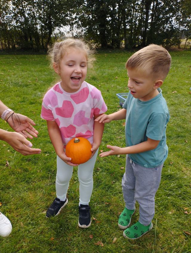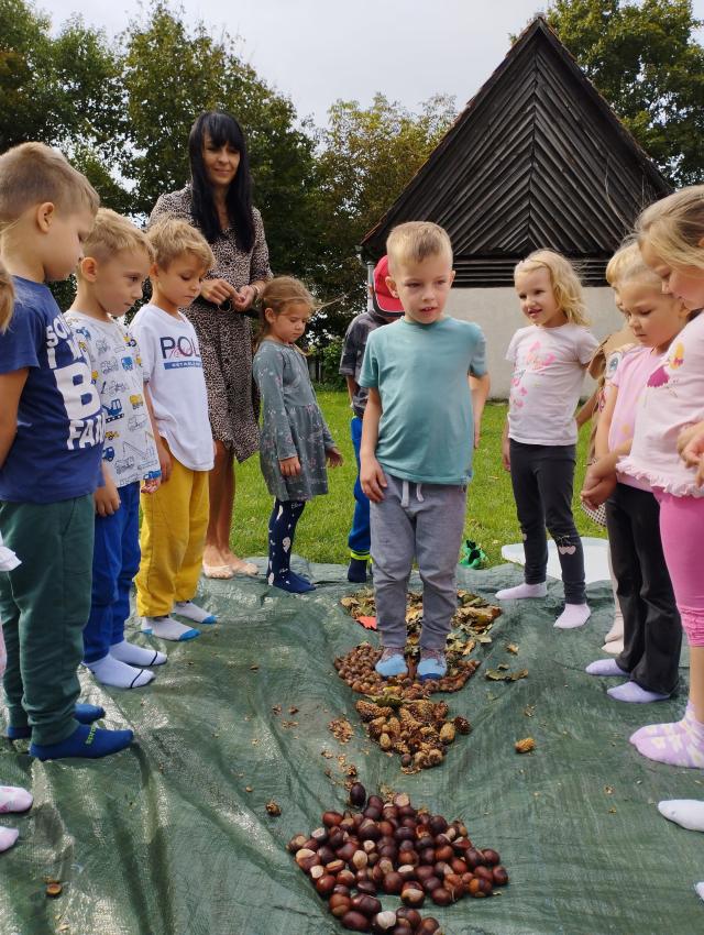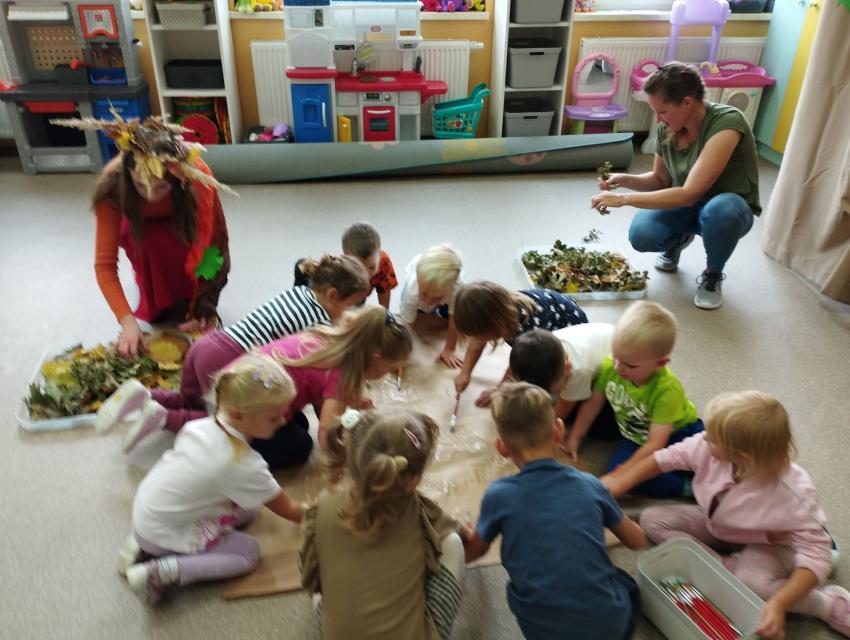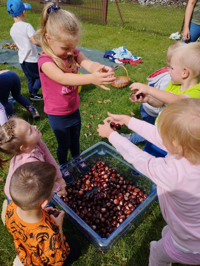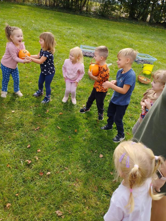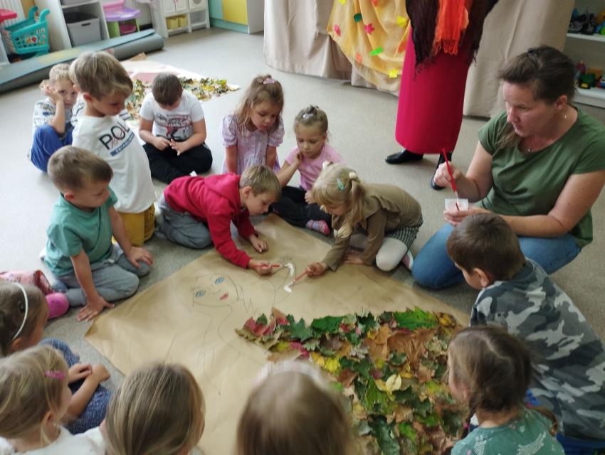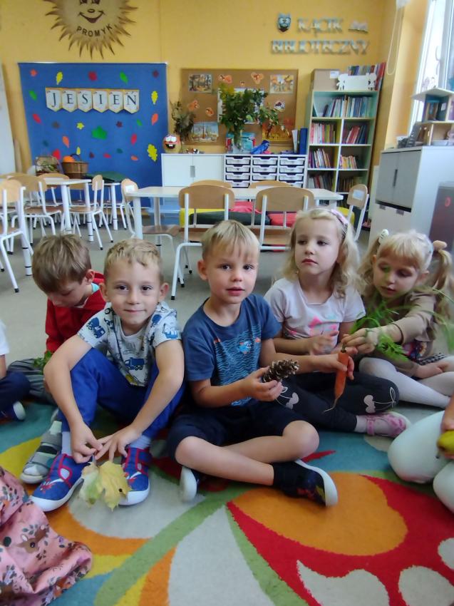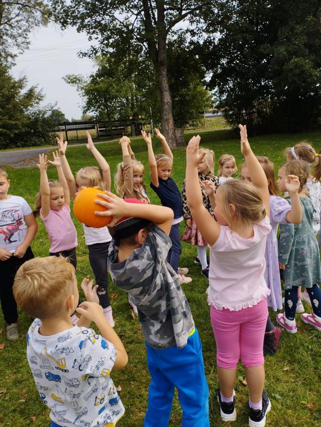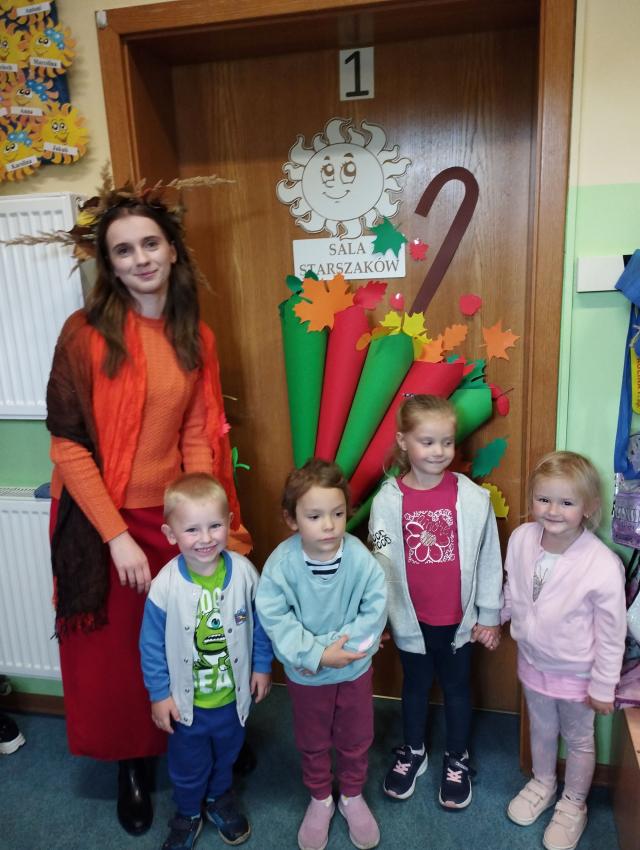 Nasze przedszkole odwiedziła dziś Pani Jesień z koszem pełnym darów jesiennych. Dzieci wesoło przywitały nowa porą roku i świetnie się z nią bawiły.
