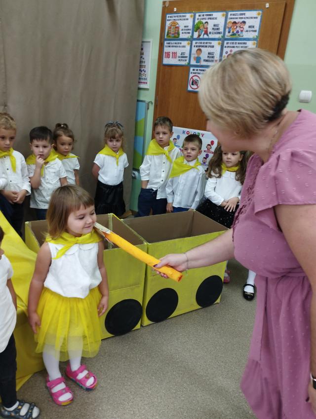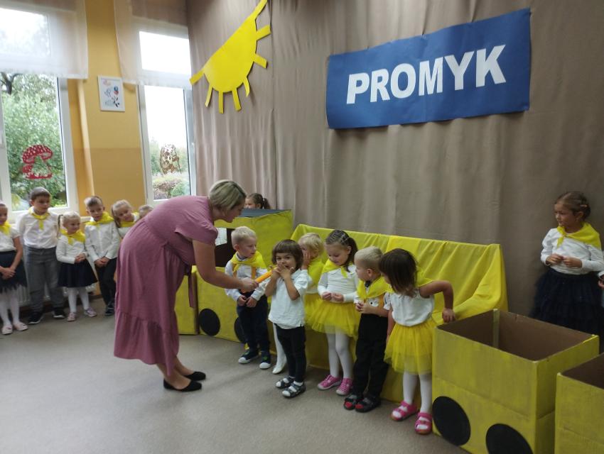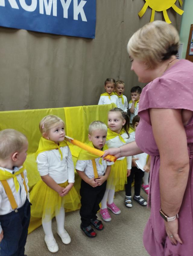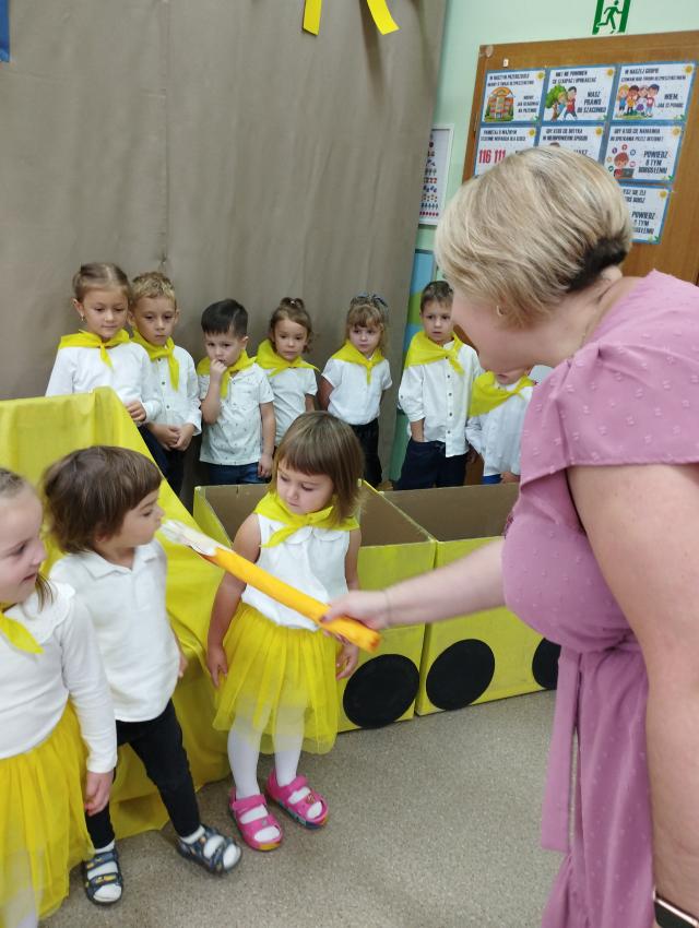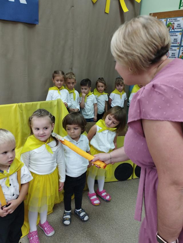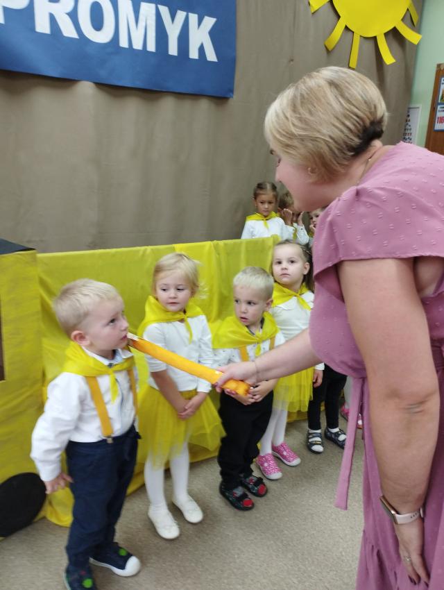 Kogo dotknę tym lizakiem, wnet się stanie przedszkolakiem- tymi słowami pani Dyrektor przyjęła dzisiaj do grona Promyczków nowych przedszkolaków podczas uroczystości Pasowania na przedszkolaka.