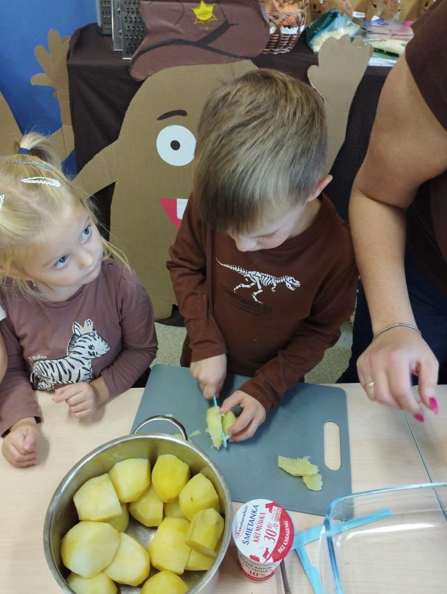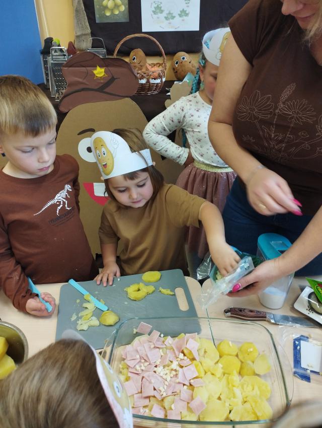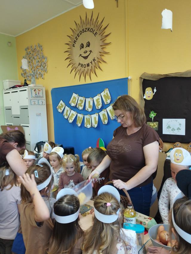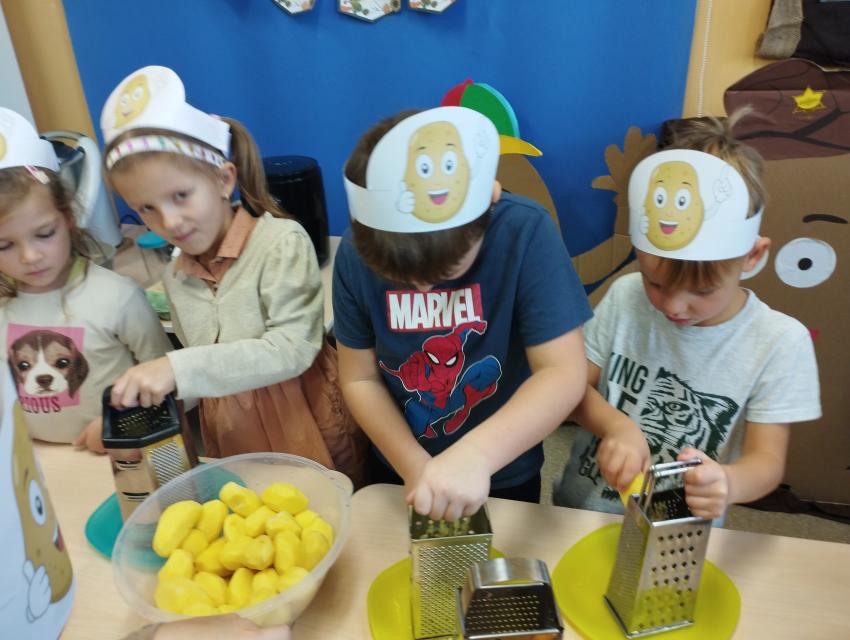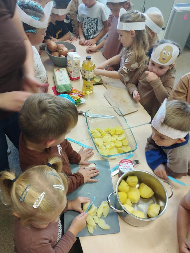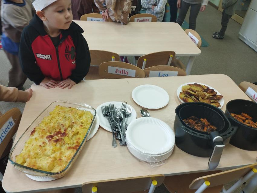 Dziś w przedszkolu odbył się kolejny dzień w ramach realizacji programu ?Promyczki bawią się zdrowo i kolorowo?. Tym razem dzieci poznały jakie właściwości ma ziemniaka i przygotowały kilka pysznych potraw z ziemniaków.