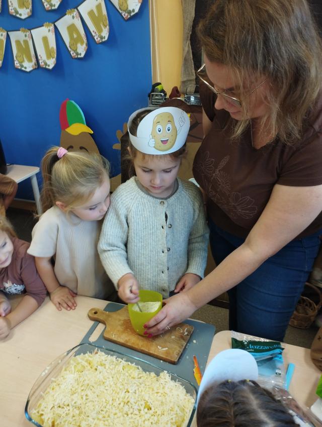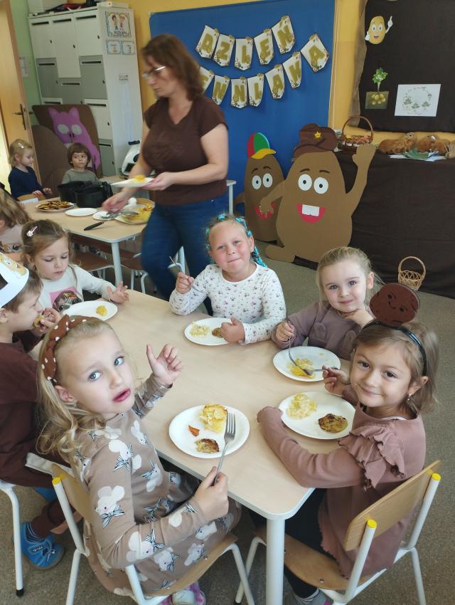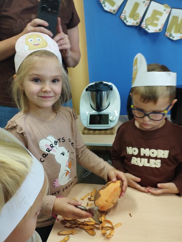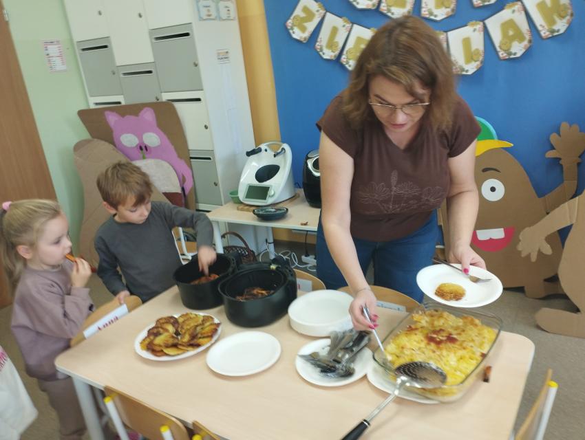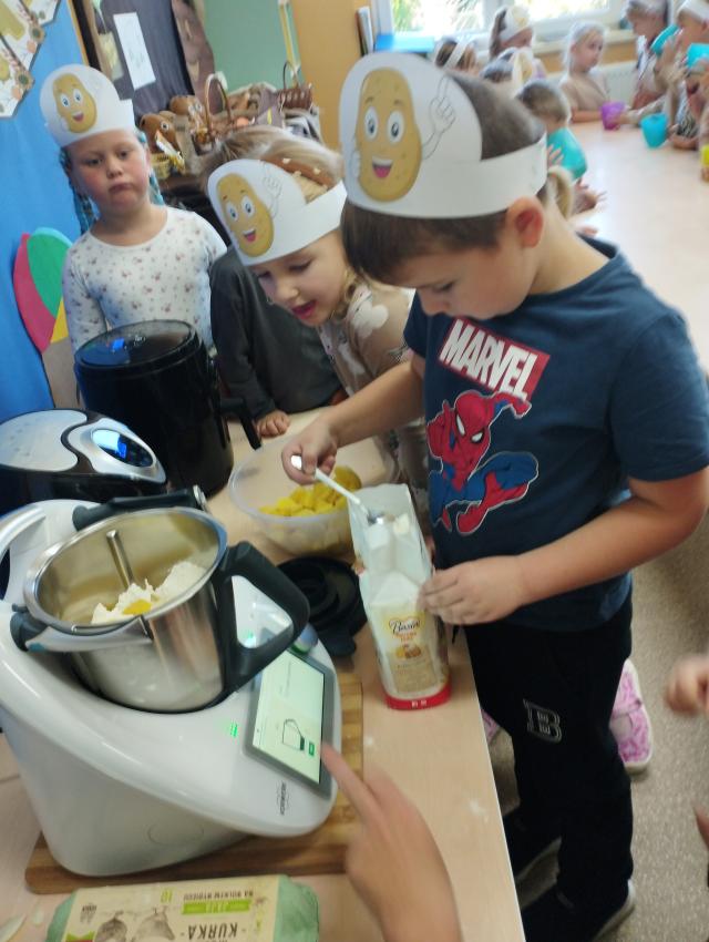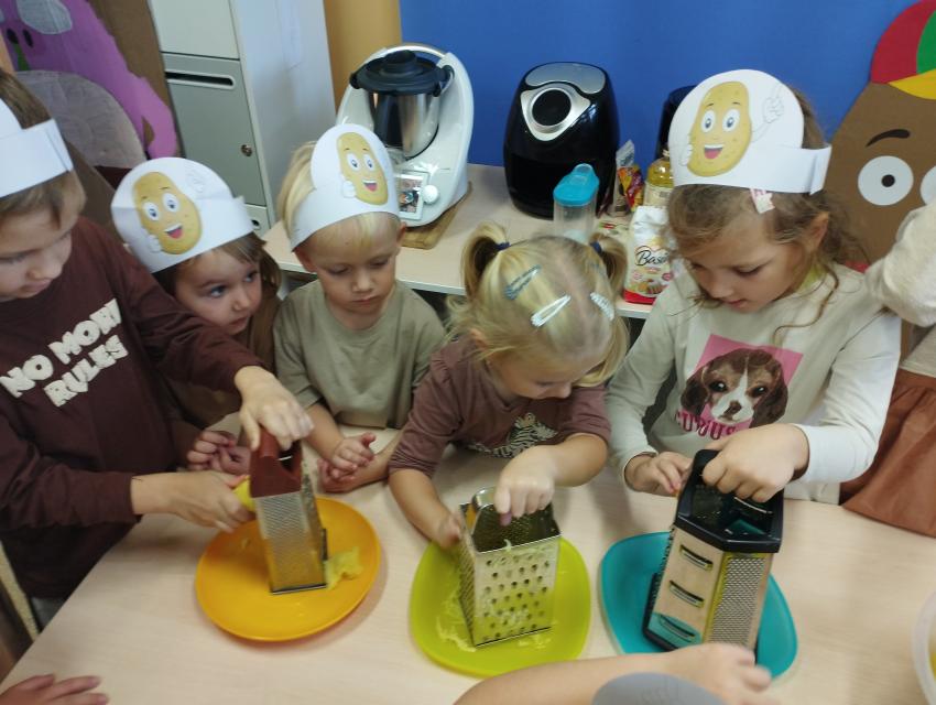 Dziś w przedszkolu odbył się kolejny dzień w ramach realizacji programu ?Promyczki bawią się zdrowo i kolorowo?. Tym razem dzieci poznały jakie właściwości ma ziemniaka i przygotowały kilka pysznych potraw z ziemniaków.