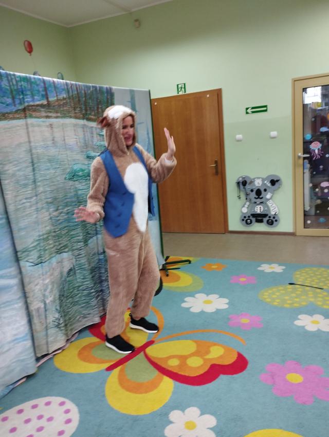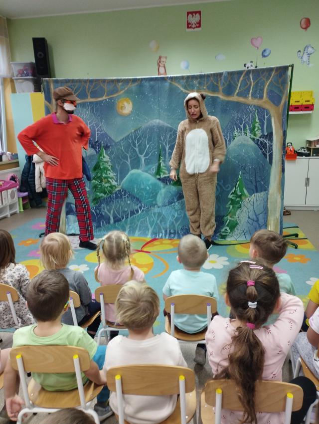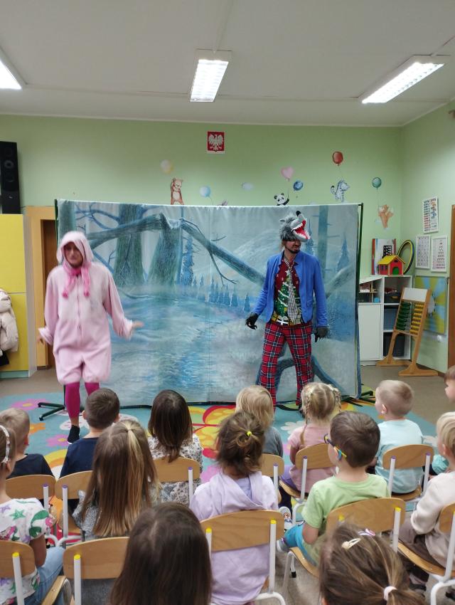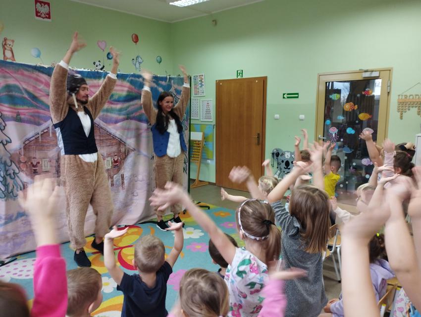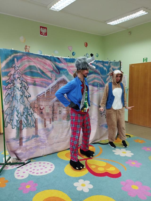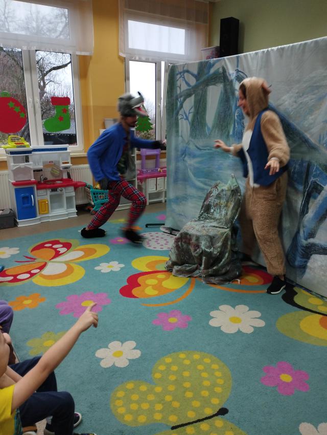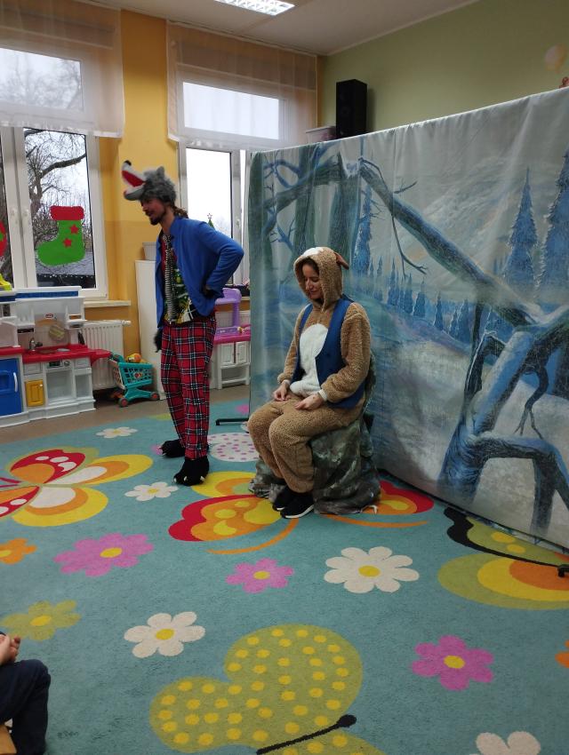 Promyczki poznały dziś bajkę Renifer Niko ratuje zimę w wykonaniu Teatrzyku Blaszany Bębenek.