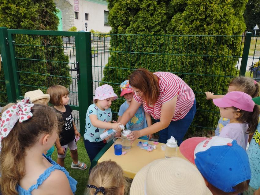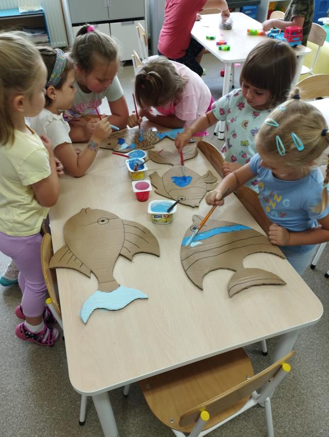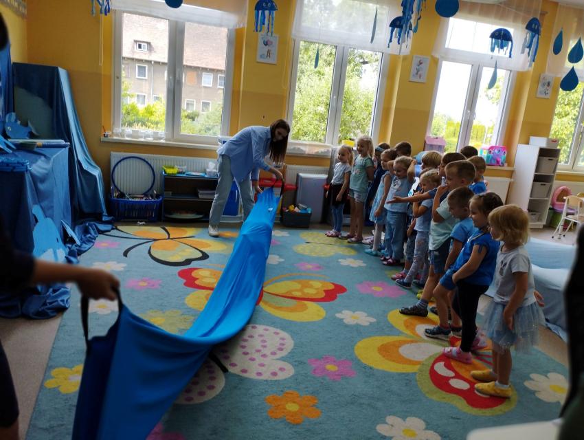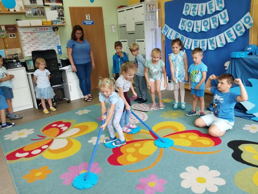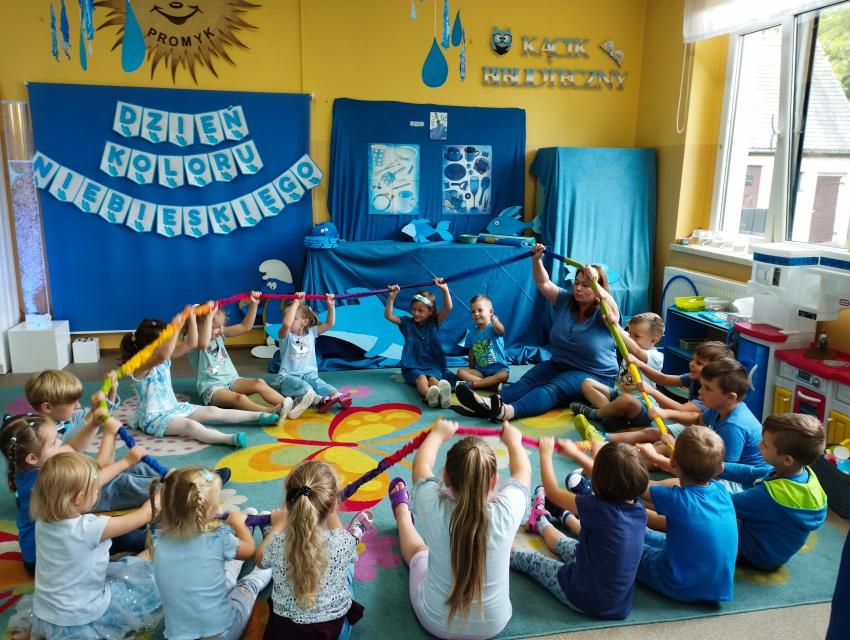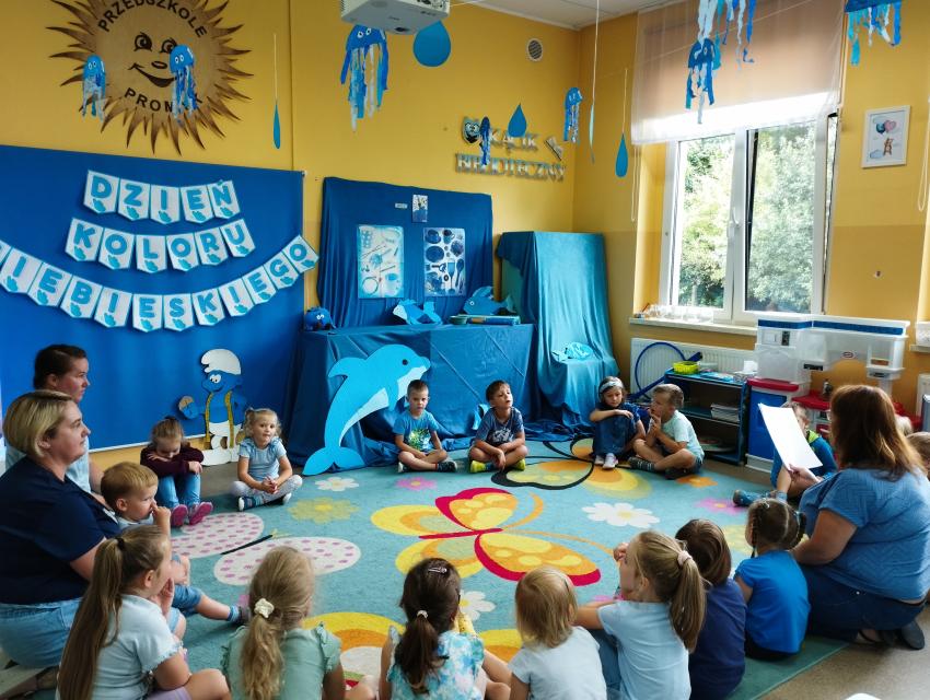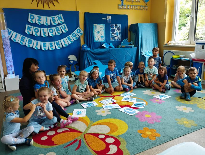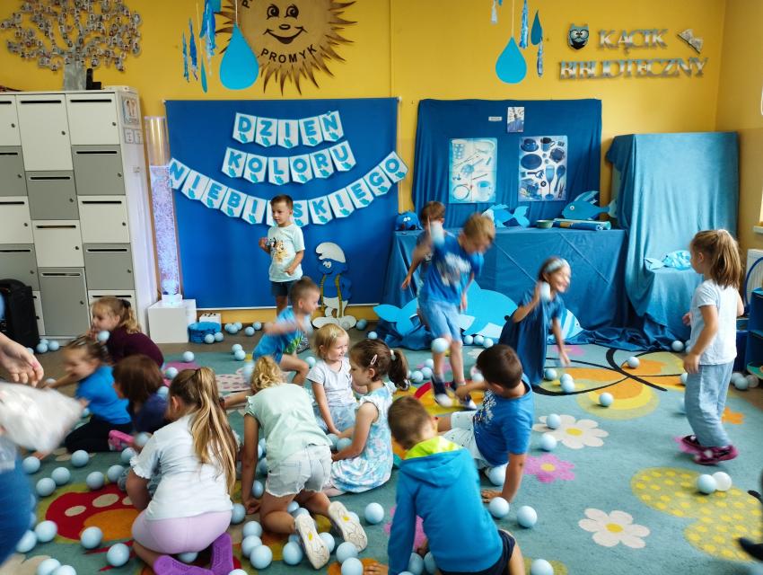 W minionym tygodniu nasze przedszkole ogarnęła kolorowa atmosfera ? tym razem królował kolor niebieski! Dzieci z radością uczestniczyły w różnorodnych zabawach i zajęciach plastycznych związanych z tym kolorem. Każdego dnia poznawały nowe odcienie niebieskiego, uczyły się rozpoznawać przedmioty i zwierzęta w tym kolorze oraz odkrywały morskie tajemnice.
