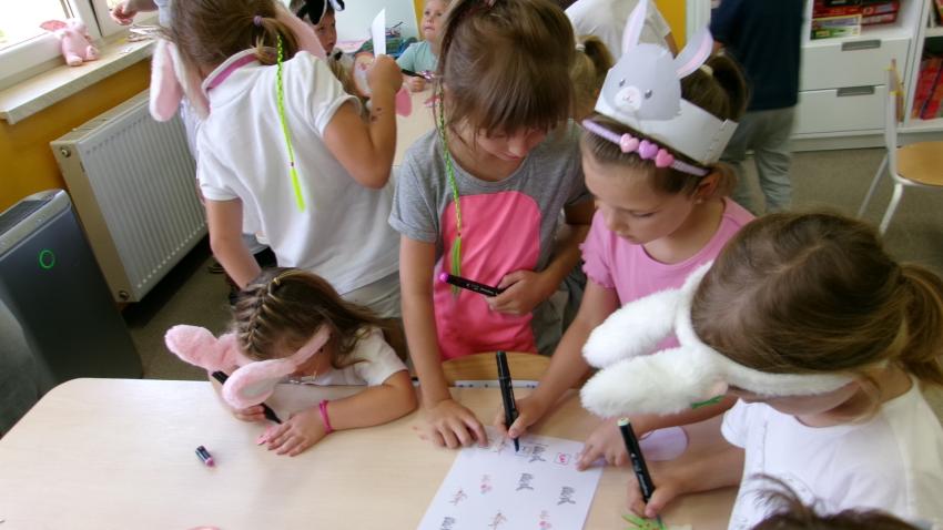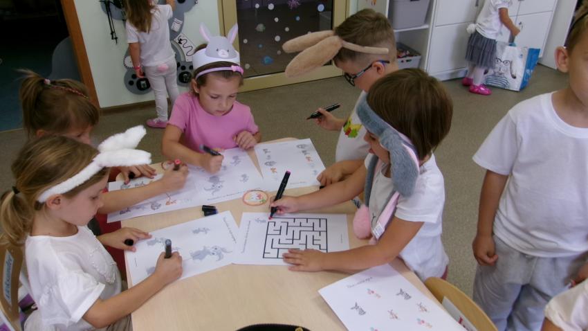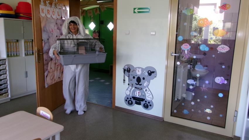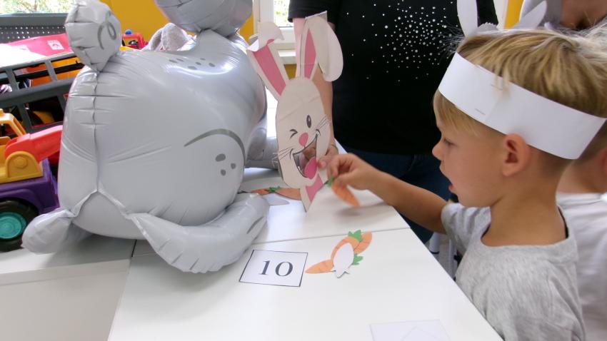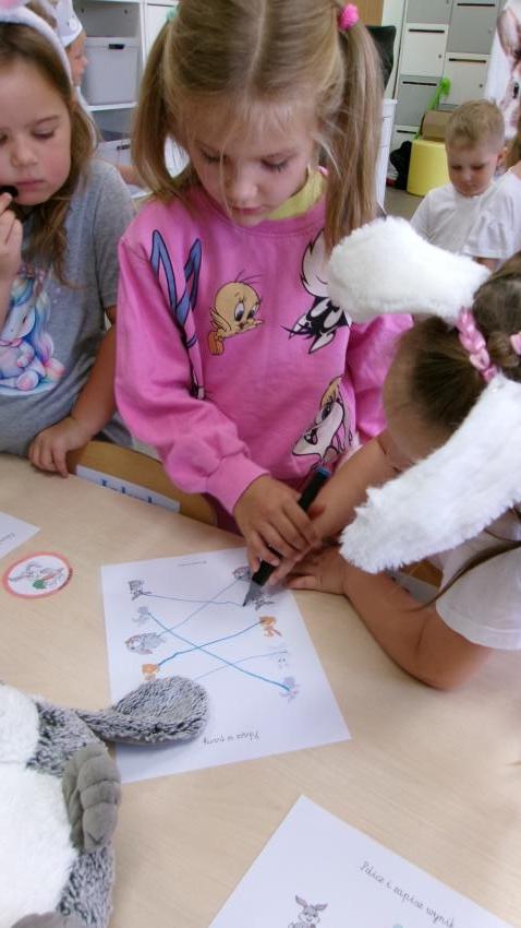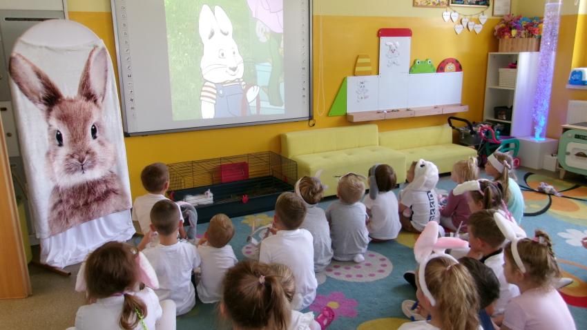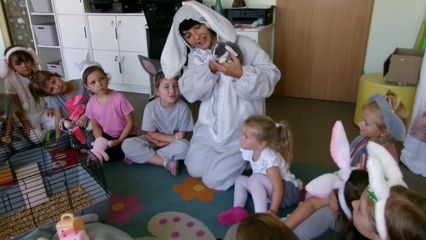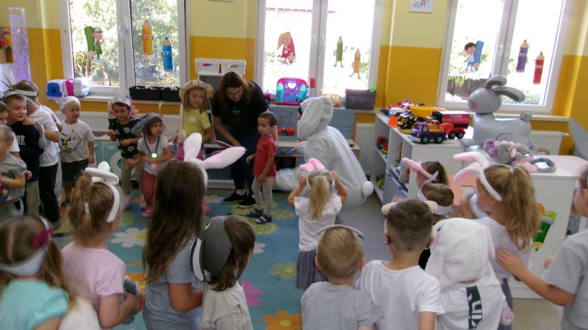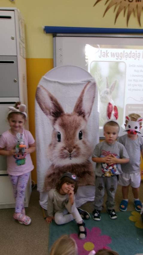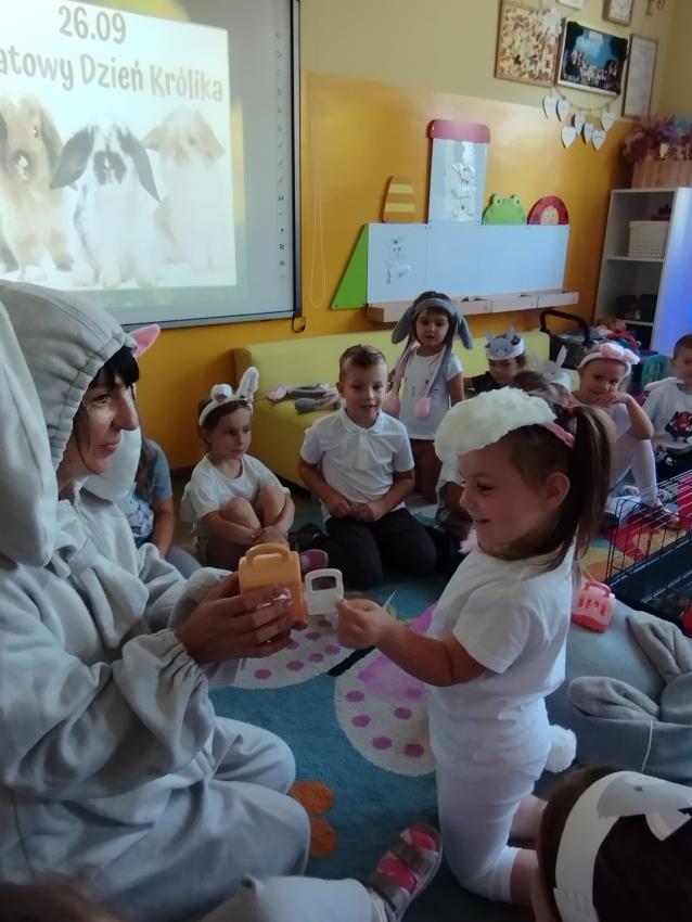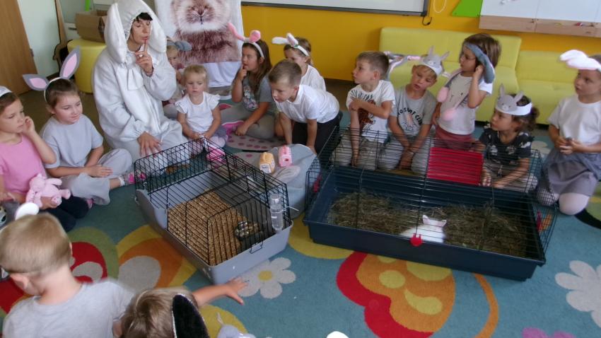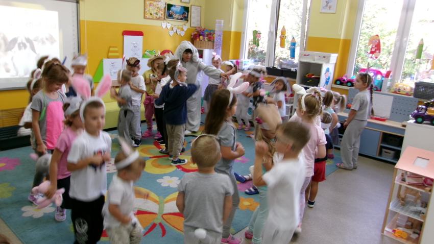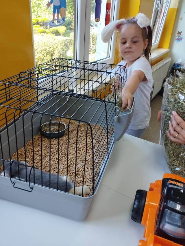 Największą atrakcją dnia był prawdziwe króliki, który odwiedził nasze przedszkole! Dzieci były zachwycone możliwością poznania ich z bliska, mogły je pogłaskać, nakarmić świeżą marchewką i sałatą, a także poobserwować, jak radośnie kica. Jeden z nich zostanie w przedszkolu na zawsze. Dzieci  wybrały dla niego imię ? Tuptuś! Królik to pierwsze zwierzątko, które poznajemy w ramach programu  Promyczki poznają zwierzęta.