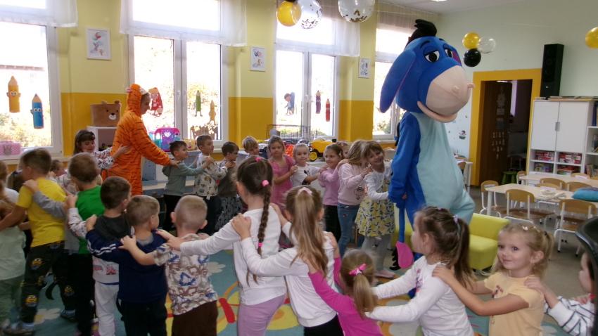 Mama Paulinki przebrana za Tygryska przeczytała dziś Promyczkom bajkę pt."Urodziny Kłapouchego", a jej przyjaciel Kłapouchy potańczył z dziećmi i rozdał im lizaki urodzinowe.