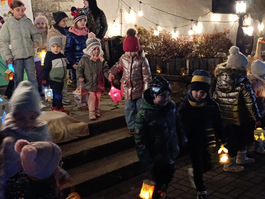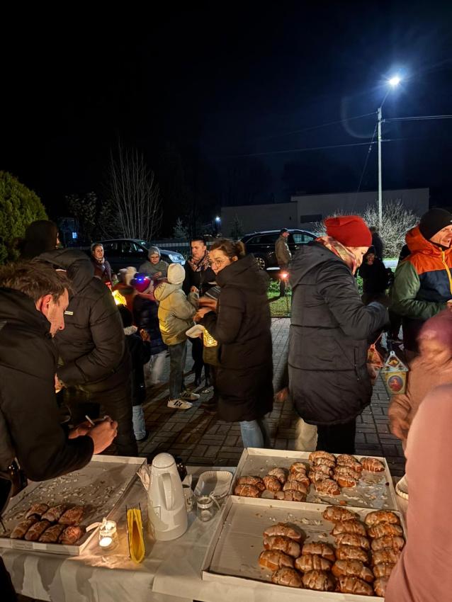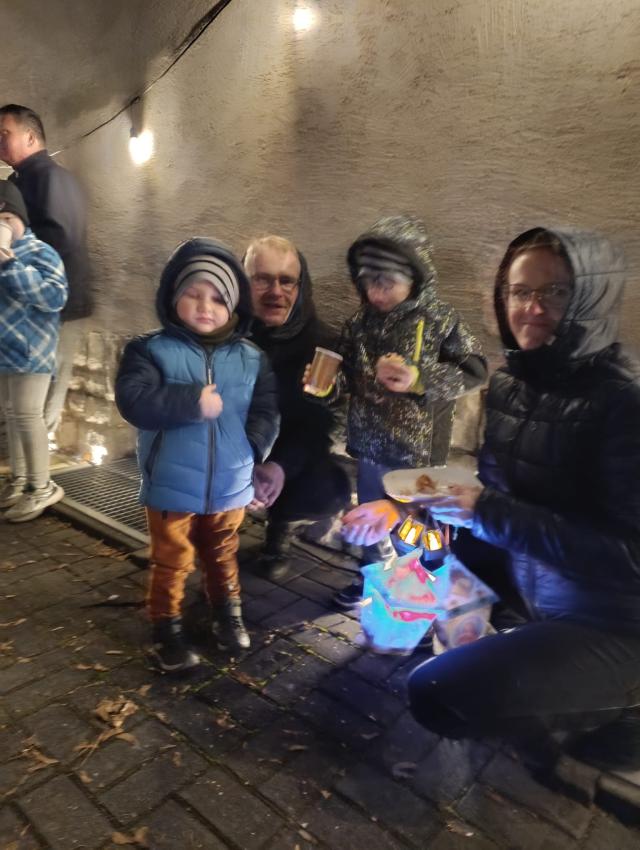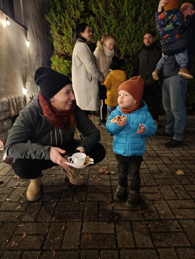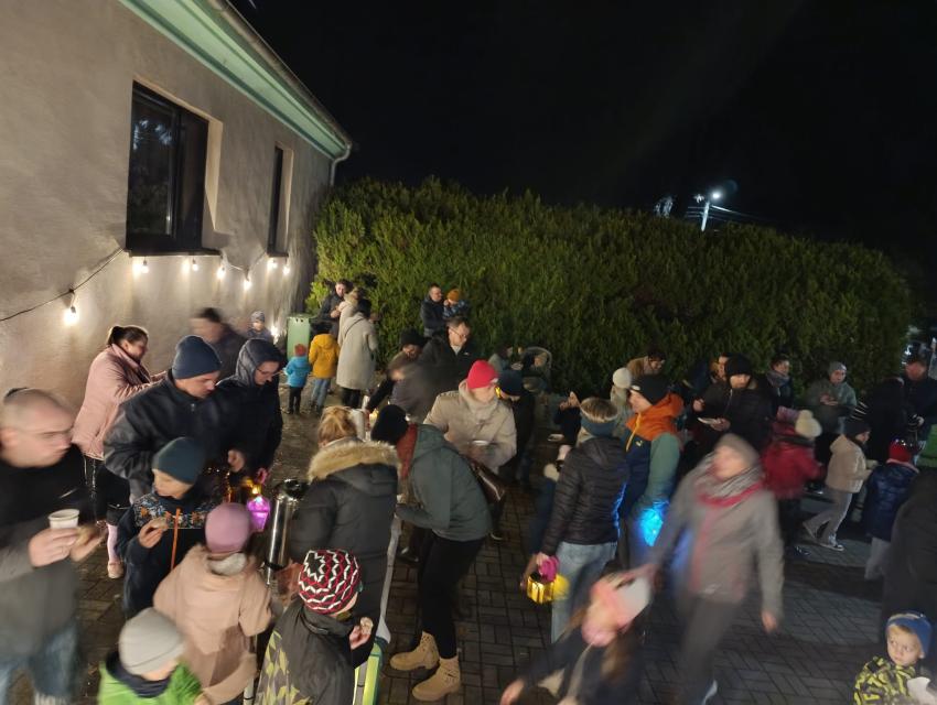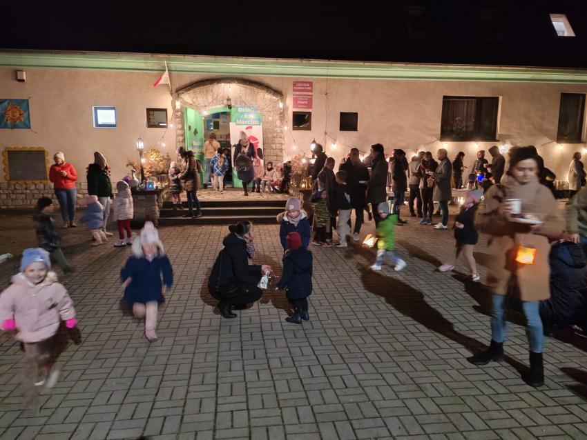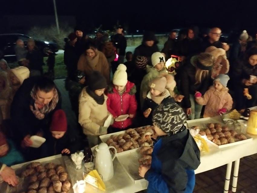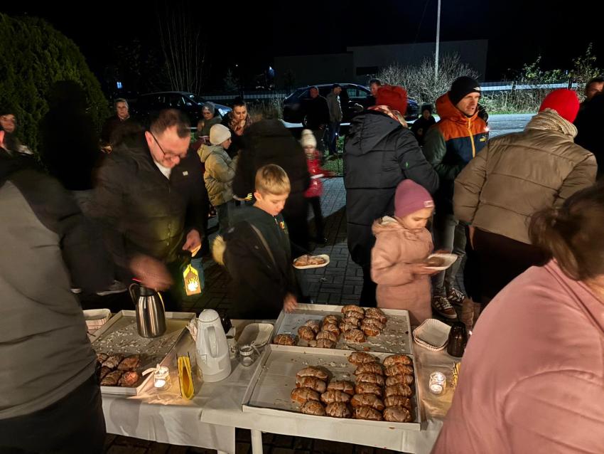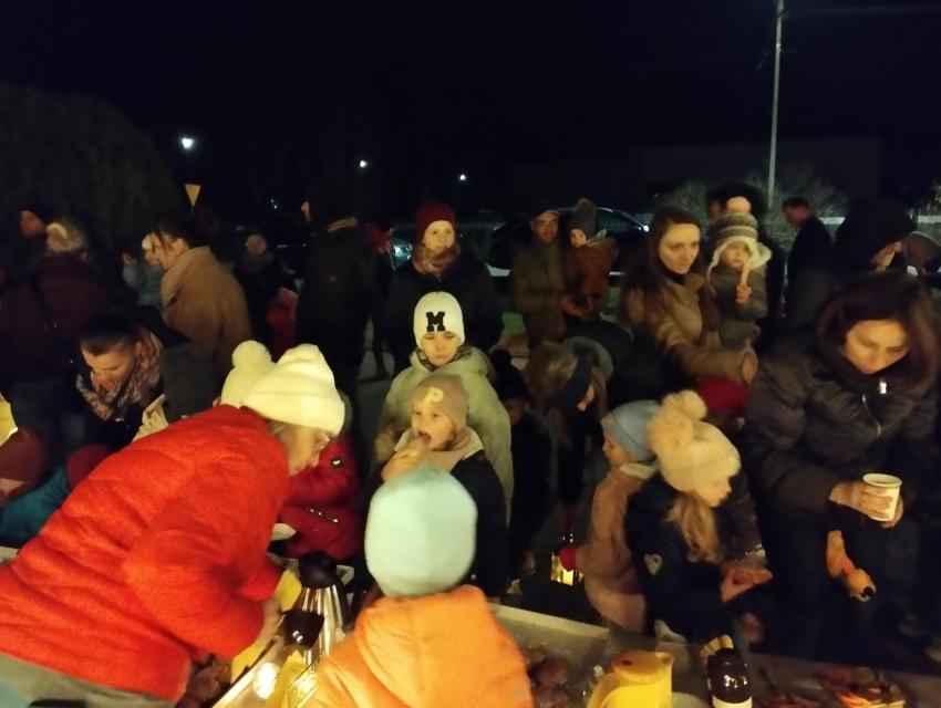 Po występie na zewnątrz czekał poczęstunek ? tradycyjne rogale, a także lampki i pochodnie, które stworzyły wyjątkowy, wieczorny klimat.