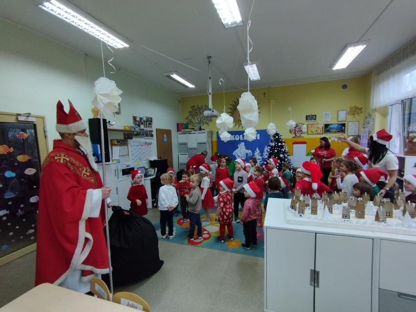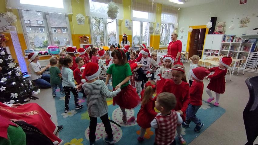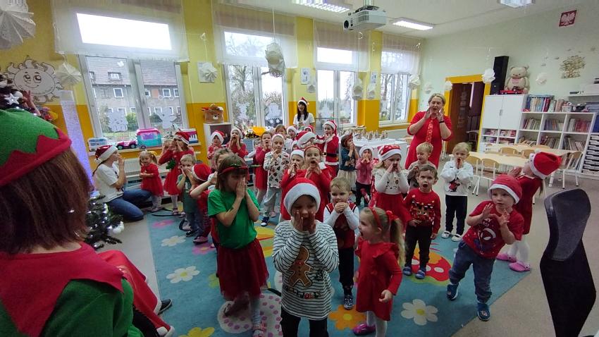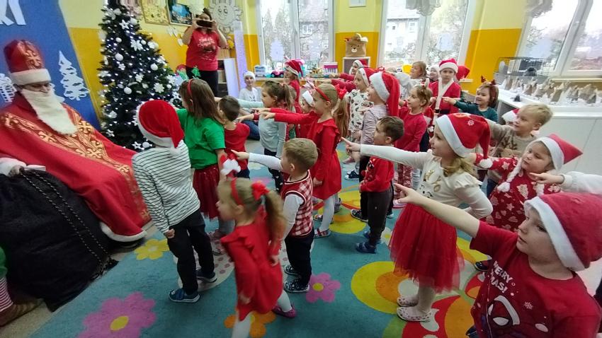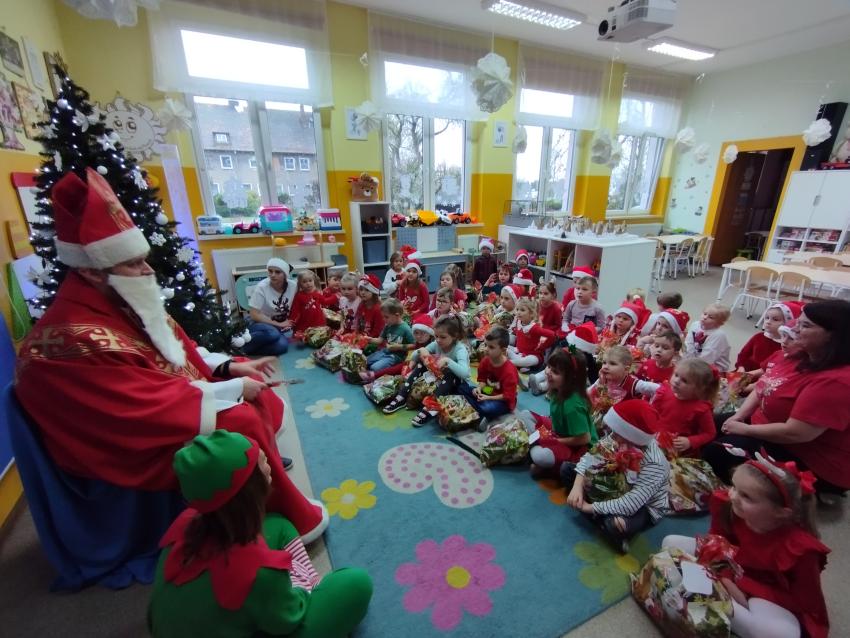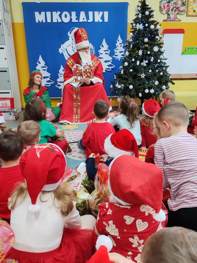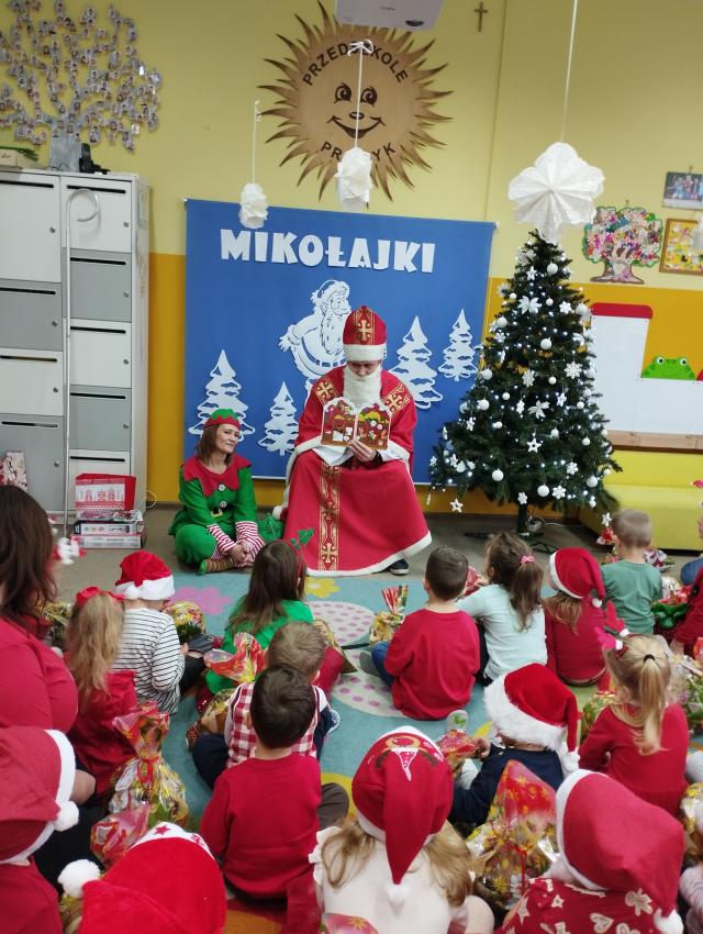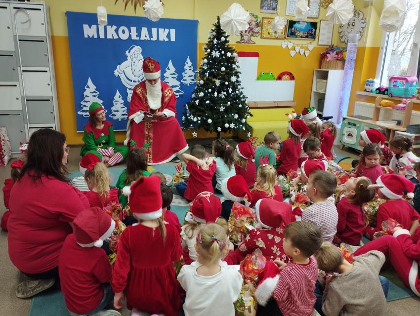 Nadszedł czas magicznych chwil w naszym przedszkolu, z okazji obchodów Mikołajek. Uroczystość pełna radości rozpoczęła się od powitania Mikołaja i jego uroczej pomocnicy Elfinki. Dzieci, pełne ekscytacji, przygotowały piękne piosenki, które specjalnie dla Mikołaja zaśpiewały z wielkim entuzjazmem. Następnie przyszedł moment, na który wszyscy czekali ? wręczenie prezentów przez Mikołaja. Każde dziecko z niecierpliwością i radością odbierało upominek, a w powietrzu unosiła się atmosfera szczęścia i wspólnoty. Na zakończenie tego niezwykłego dnia dzieci gorąco podziękowały Mikołajowi i Elfince za ich wizytę, a pożegnanie odbyło się z obietnicą, że czekamy na ich powrót za rok. Te wspomnienia z pewnością pozostaną z nami na długo.