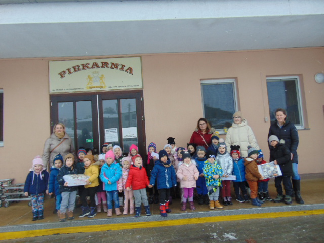 Dzięki uprzejmości firmy Kotarski mieliśmy okazję zobaczyć jak wygląda praca piekarza i cukiernika. Dzieci dowiedziały się jak piecze się chleby, bułki i rogaliki. Miały również możliwość wykonania i udekorowania pysznych pierników.