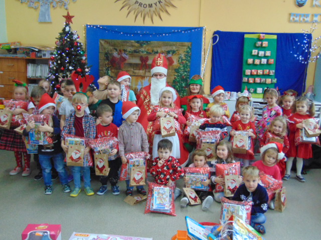 Wizyta świętego Mikołaja w naszym Przedszkolu, to jeden z najbardziej oczekiwanych przez dzieci dni w roku. Dzień Mikołajek był wyjątkowy i magiczny. Przedszkolaki śpiewały piosenki, recytowały wierszyki, tańczyły przed miłym Gościem. Mikołaj obdarował dzieci prezentami. A prezenty były wspaniałe.