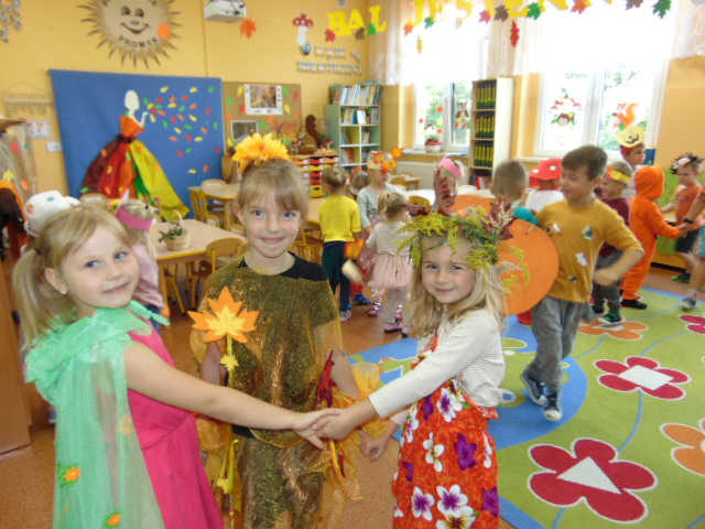 Wczoraj balem powitaliśmy nową porę roku - jesień. Wszystkie Promyczki przygotowały tematyczne stroje, by poczuć jesienny klimat.