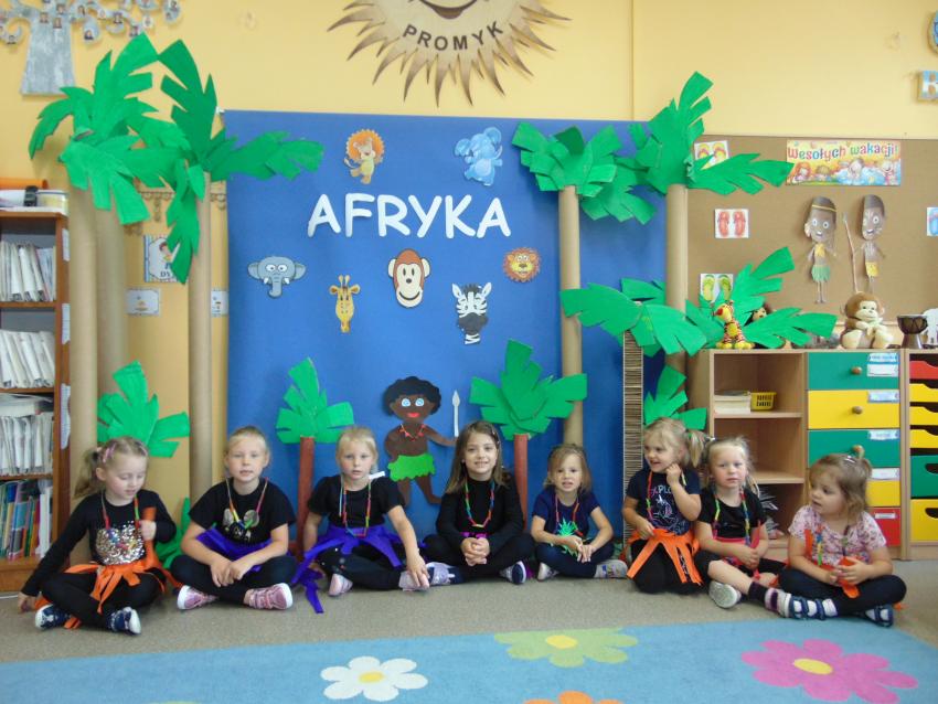 Za nami kolejny tydzień wakacji, który upłynął nam na "zwiedzaniu" Afryki. Poznaliśmy wiele ciekawostek dotyczących tego kontynentu. Zorganizowaliśmy w naszym przedszkolu kącik tematyczny, który pozwolił nam poczuć magię Afryki. Cały tydzień samodzielnie wykonaliśmy elementy stroju afrykańskiego, by wspólnie bawić sie przy tematycznych piosenkach.