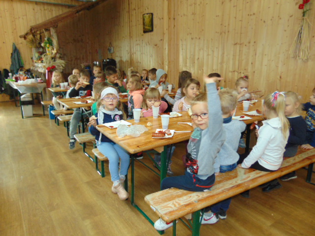 W tym roku Święto Pieczonego Ziemniaka obchodziliśmy w gospodarstwie agroturystycznym GIPROL w Staniszczach Małych. Na polu kopaliśmy i zbieraliśmy ziemniaki, które piekły się pożniej w ognisku. Przechodziliśmy przez labirynt w kukurydzy, piekliśmy chlebek, doiliśmy krowę i robiliśmy różne lalki z kolb kukurydzy. Na wycieczce było więc bardzo aktywnie i pracowicie, ale wszyscy wrócili zadowoleni.
