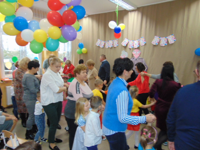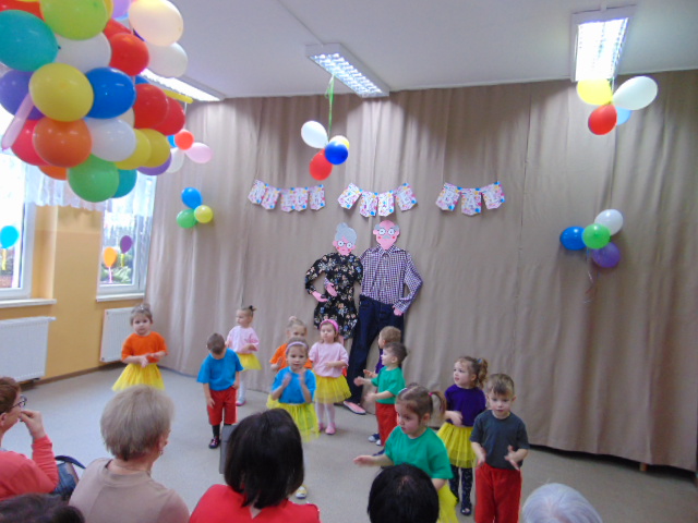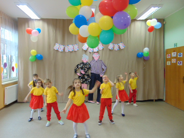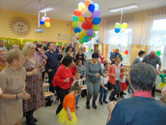 Z okazji Dnia Babci i Dziadka w przedszkolu odbył się kolejny bal karnawałowy, na którym dzieci bawiły się ze swoimi Dziadkami.