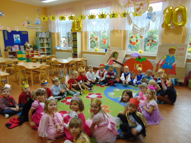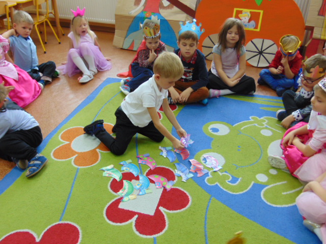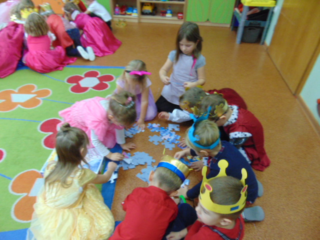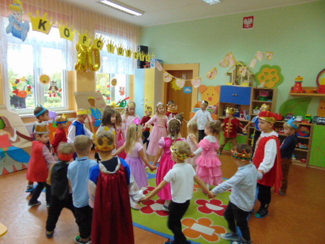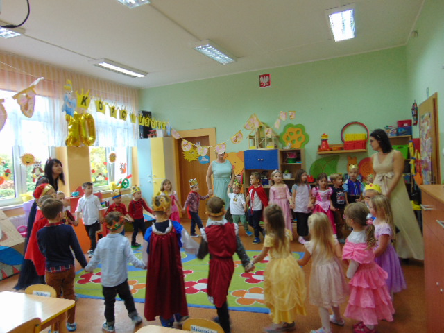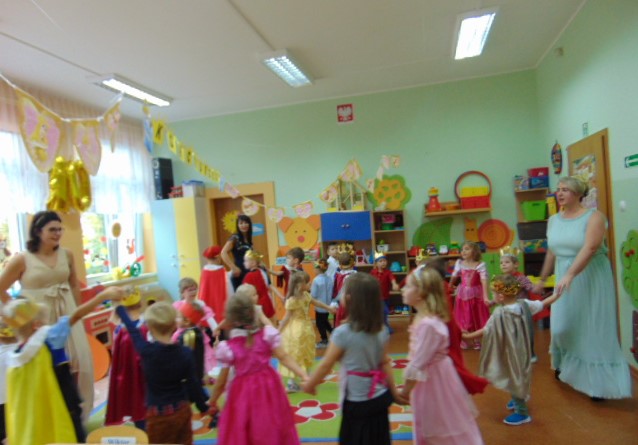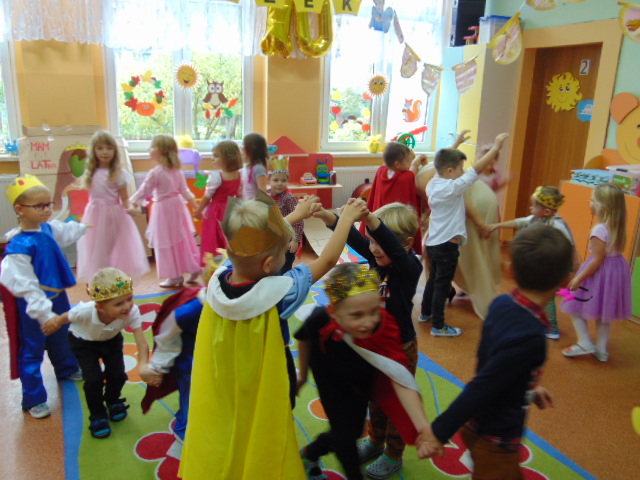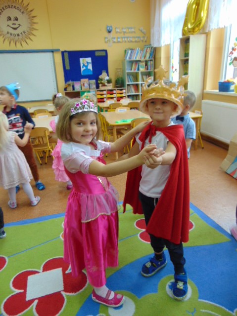 Dziś wspaniale bawiliśmy się na balu u Kopciuszka. Promyczki przebrały się za śliczne księżniczki i przystojnych królewiczów. Nie zabrakło także prawdziwego Kopciuszka.