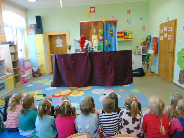 Gościliśmy dziś w naszym przedszkolu teatrzyk kukiełkowy Magnus z przedstawieniem pt. ?Czerwony Kapturek?.