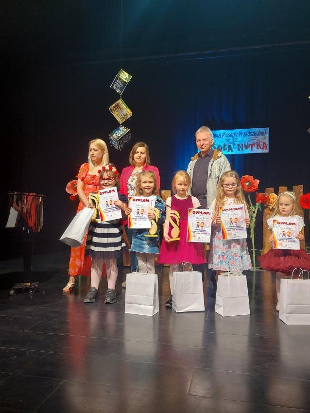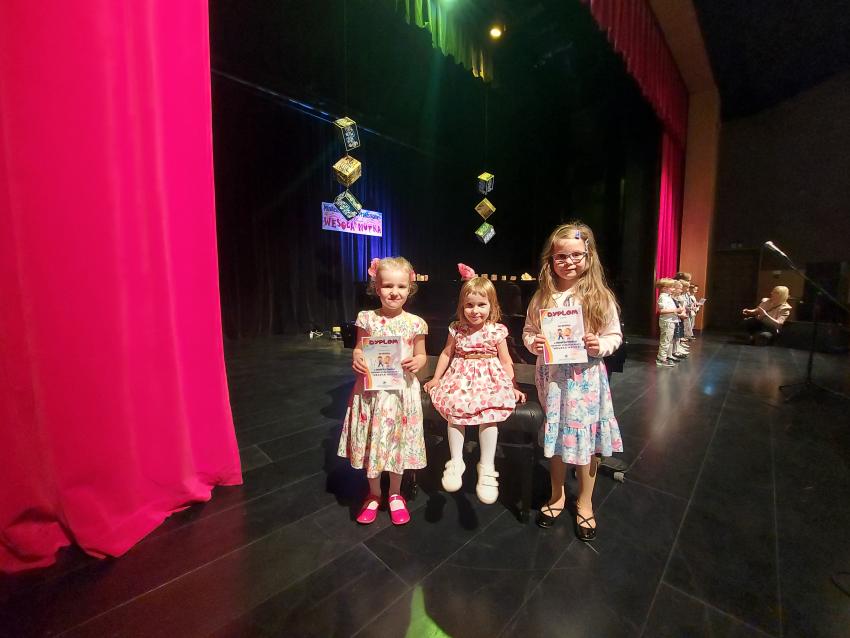 W dniu dzisiejszym nasze przedszkolaki brały udział w konkursie piosenki przedszkolnej Wesoła Nutka. Niezmiernie nam miło poinformować, że dwie dziewczynki zdobyły wyróżnienie w swoich kategoriach wiekowych. Julii i Dominice serdecznie gratulujemy i dziękujemy za reprezentowanie naszego przedszkola!!!