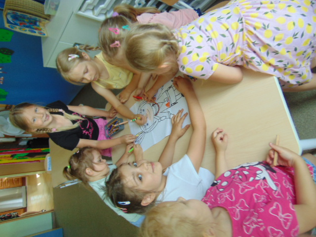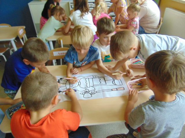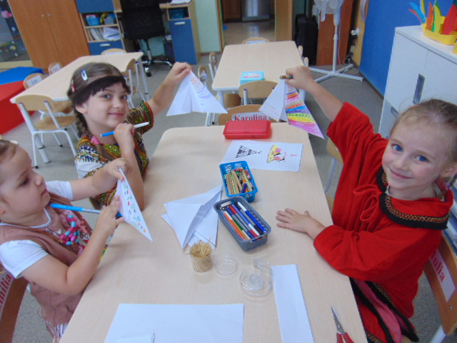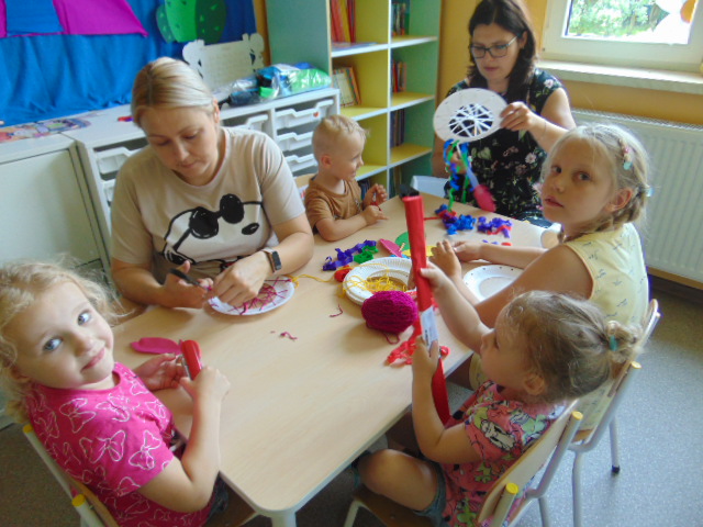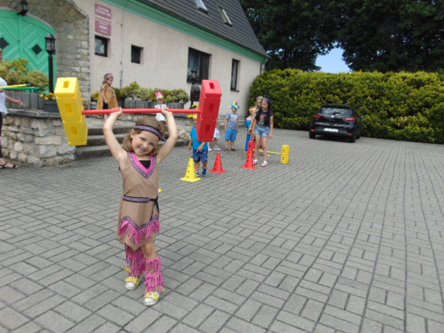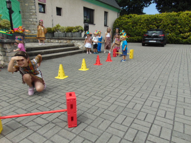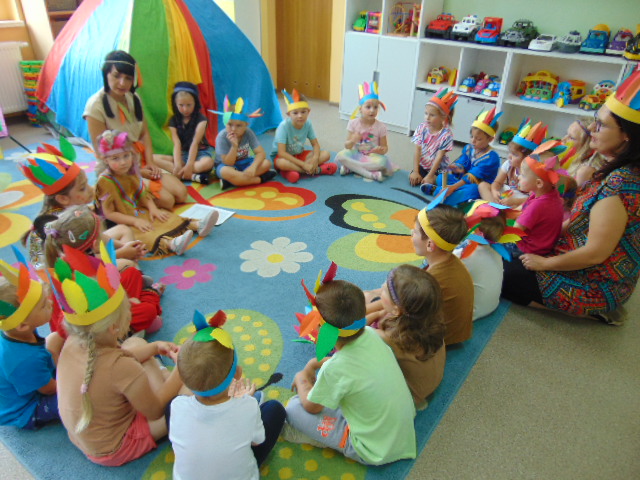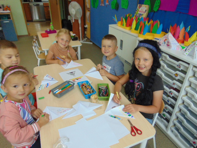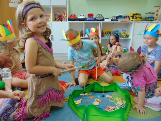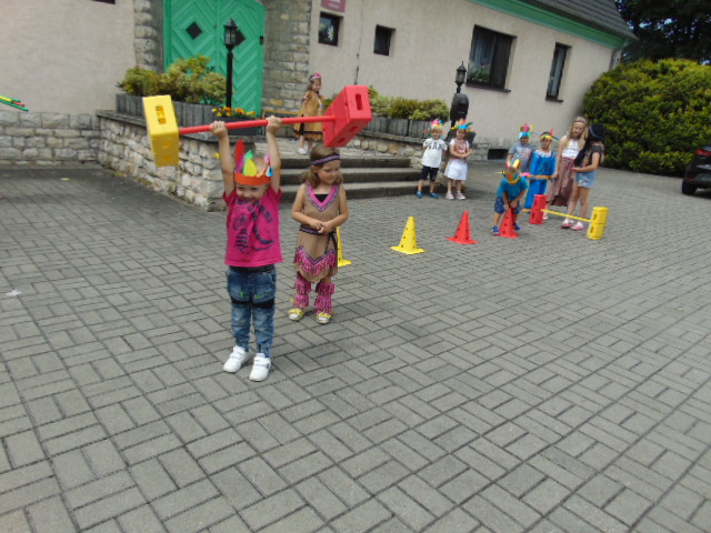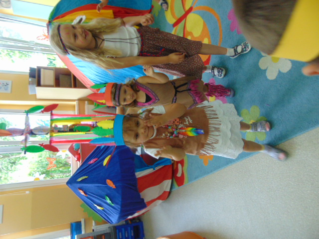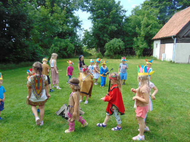 To był pierwszy wakacyjny tydzień wspaniałej zabawy w wiosce indiańskiej. Zabawy, połączonej z nauką na temat kultury Indian. Tematem przewodnim prac byli Indianie, portrety, pióropusze, łapacze snów, wioska indiańska. W czwartek dzieci przebrały się za prawdziwych Indian- świetnie się bawiły, a my razem nimi.