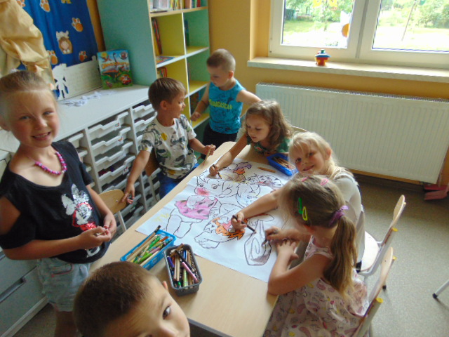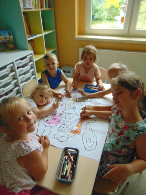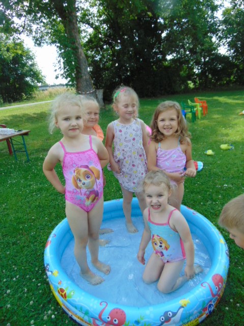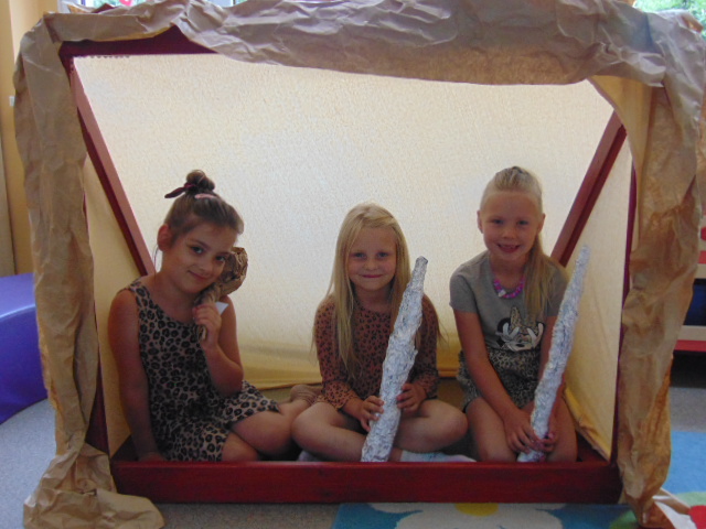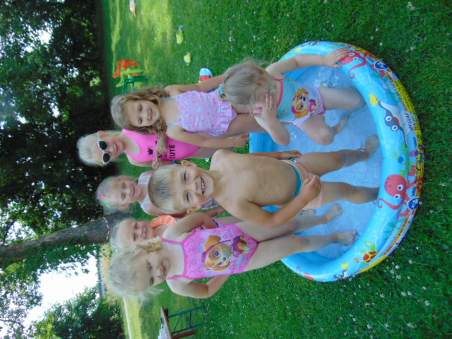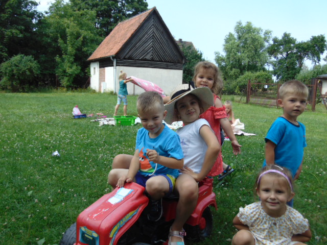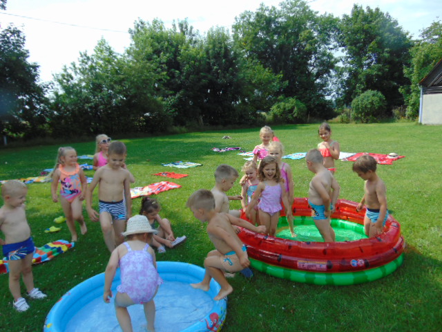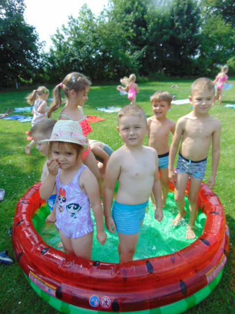 Kolejny tydzień wakacji upłynął nam na zabawie w Jaskiniowców. Słoneczna pogoda pozwoliła nam również na zabawy w basenikach oraz urządzenie pikniku na naszej polance.