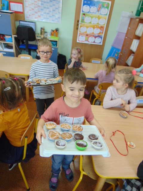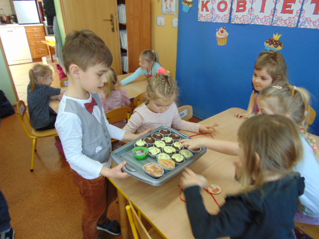 Nasze dziewczynki świętowały dziś w przedszkolu Dzień Kobiet. Z tej okazji chłopcy zaśpiewali im "sto lat", złożyli życzenia i poczęstowali pysznymi mufinkami.