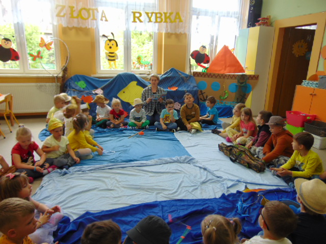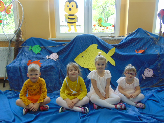Dzisiaj zakończyliśmy podróże po bajkach i baśniach, poznając przygody ostatniej bajki pt. "O Rybaku i złotej rybce". Nie zabrakło wśród nas rybaków, złotych rybek, a nawet sieci.