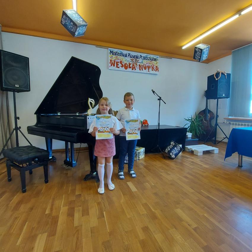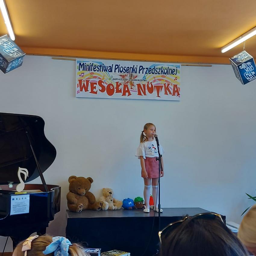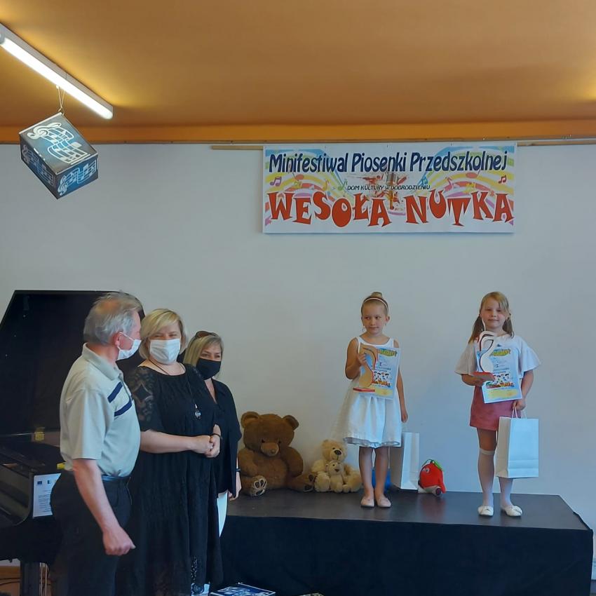 W Dobrodzieńskim Domu Kultury odbył się dzisiaj Minifestiwal Piosenki Przedszkolnej "Wesoła Nutka", w którym wzięli udział: Lena K. z piosenką "Bajkowe marzenia" i Andreas S. "Hej przedszkole ukochane". Dziękujemy bardzo za reprezentowanie naszego przedszkola i gratulujemy talentu oraz odwagi! Miło nam poinformować, że Lena K. zajęła I miejsce w swojej kategorii wiekowej.