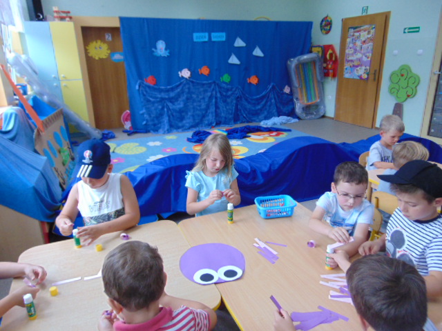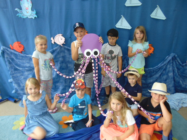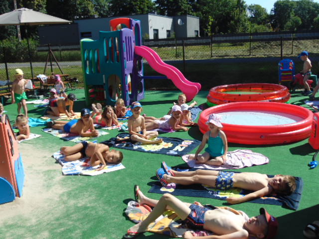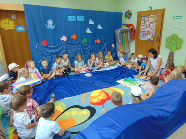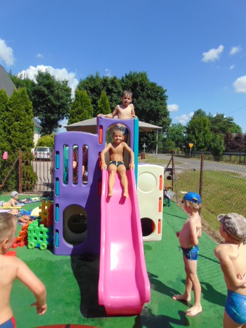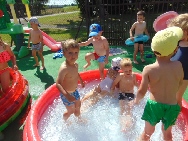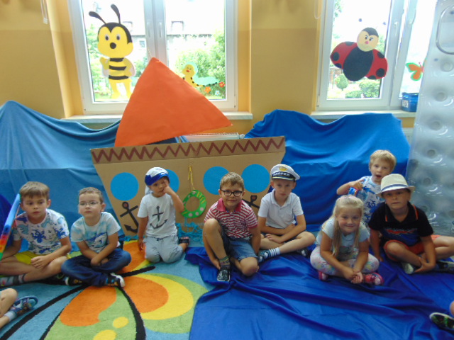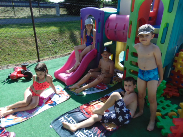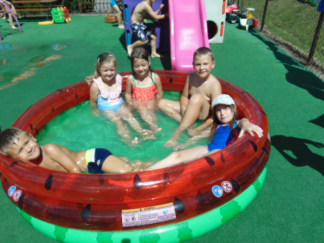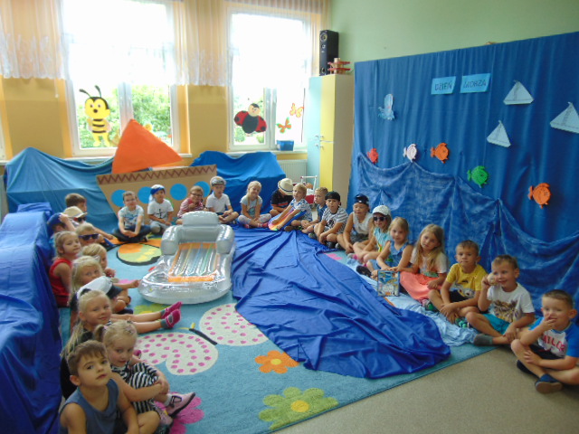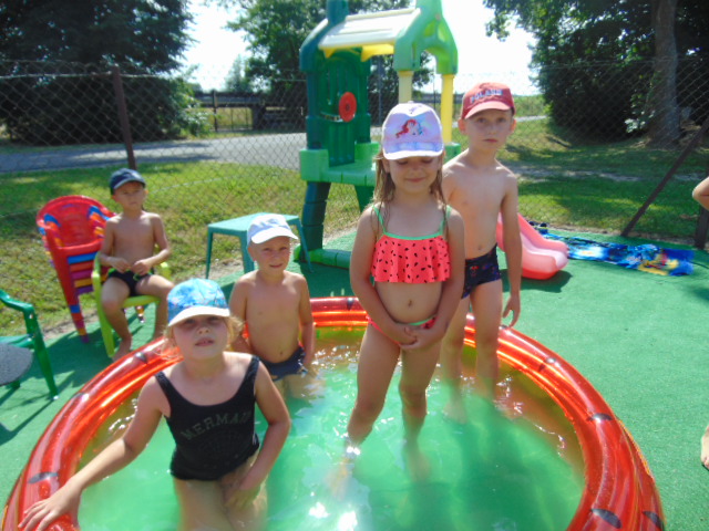 Podczas tego wakacyjnego tygodnia wybraliśmy się "nad morze". Pogoda dopisywała, więc dzieci chłodziły sie w basenikach. Zorganizowaliśmy również Dzień Morza, w którym nie zabrakło morskich zabaw.