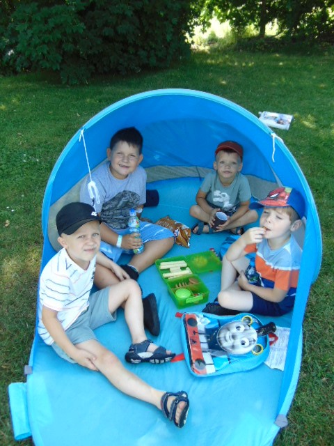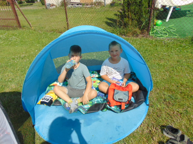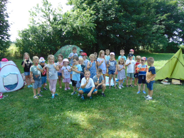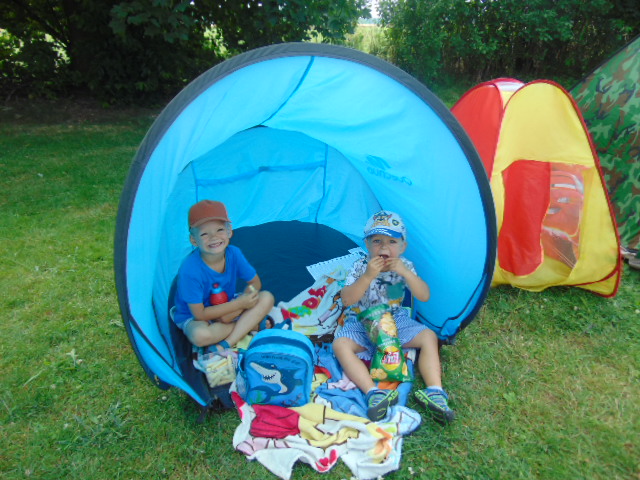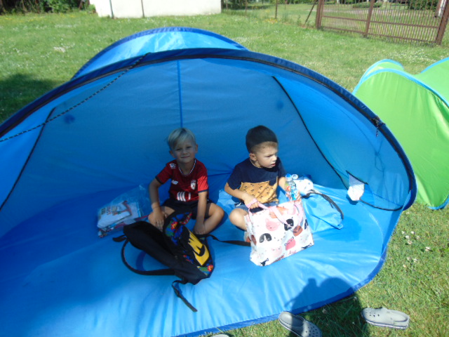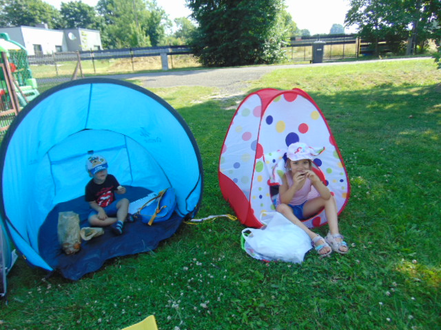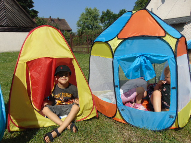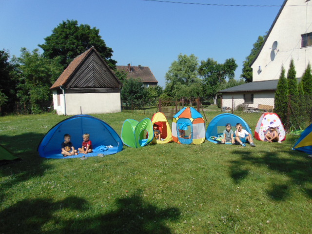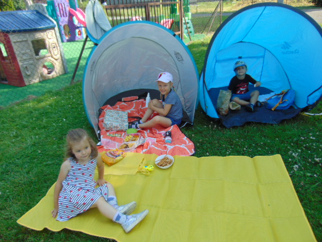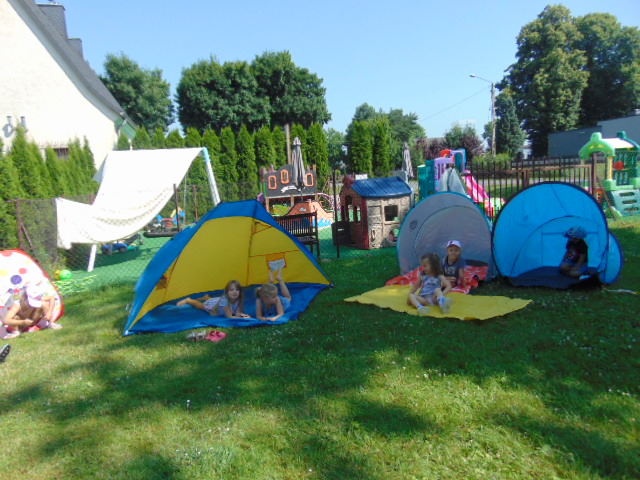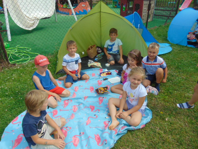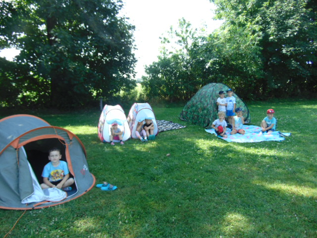 Kolejny wakacyjny tydzień upłynął nam na zabawach pod namiotami. W ostatnich dniach przedszkolna polanka zamieniła się w prawdziwe pole namiotowe. Możemy powiedzieć, że były to przygotowania do prawdziwego biwaku, na który każdy przedszkolak wybierze się z wielką chęcią.