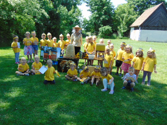 Z okazji Dnia Dziecka na naszej przedszkolnej polance odbyły się dzisiaj warsztaty pszczelarskie, podczas których dowiedzieliśmy się wielu ciekawostek o pszczołach. Oglądaliśmy również pszczoły w ulu i każdy wykonał świece z plastra miodu.