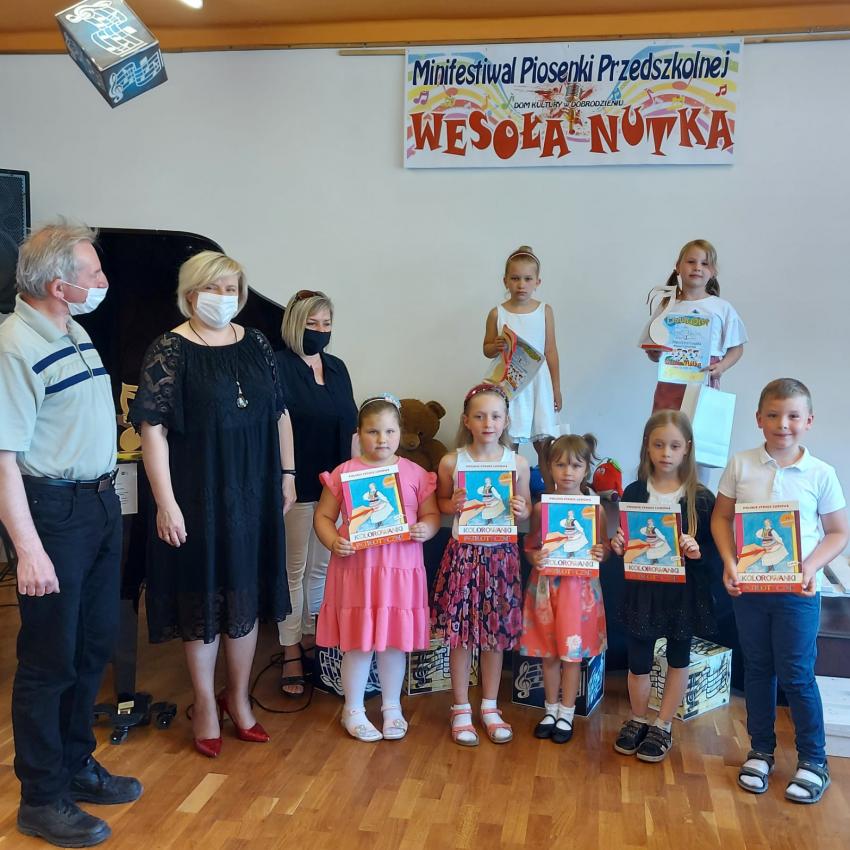 W Dobrodzieńskim Domu Kultury odbył się dzisiaj Minifestiwal Piosenki Przedszkolnej "Wesoła Nutka", w którym wzięli udział: Lena K. z piosenką "Bajkowe marzenia" i Andreas S. "Hej przedszkole ukochane". Dziękujemy bardzo za reprezentowanie naszego przedszkola i gratulujemy talentu oraz odwagi! Miło nam poinformować, że Lena K. zajęła I miejsce w swojej kategorii wiekowej.