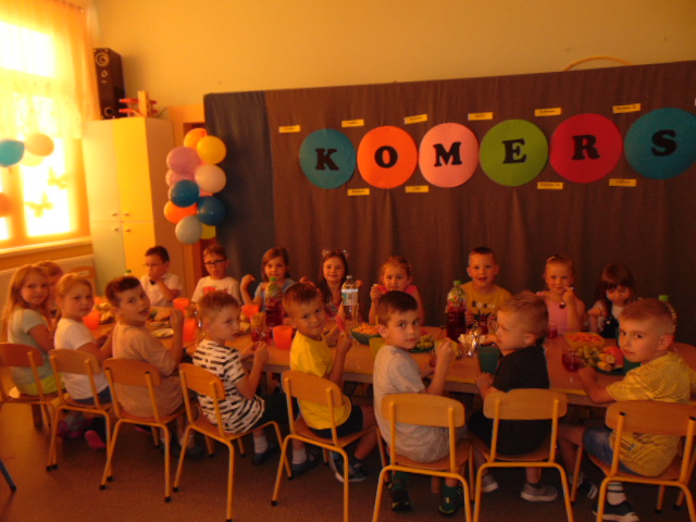 W piątek wieczorem odbył się w przedszkolu komers starszaków. Tego dnia starszaki poprzez rozwiązanie zagadek zdobyły klucze do przedszkola i przejęły nad nim władzę. Zabawa trwała do białego rana i wszystkie starszaki wyczerpane ale szczęsliwe wróciły do domu.